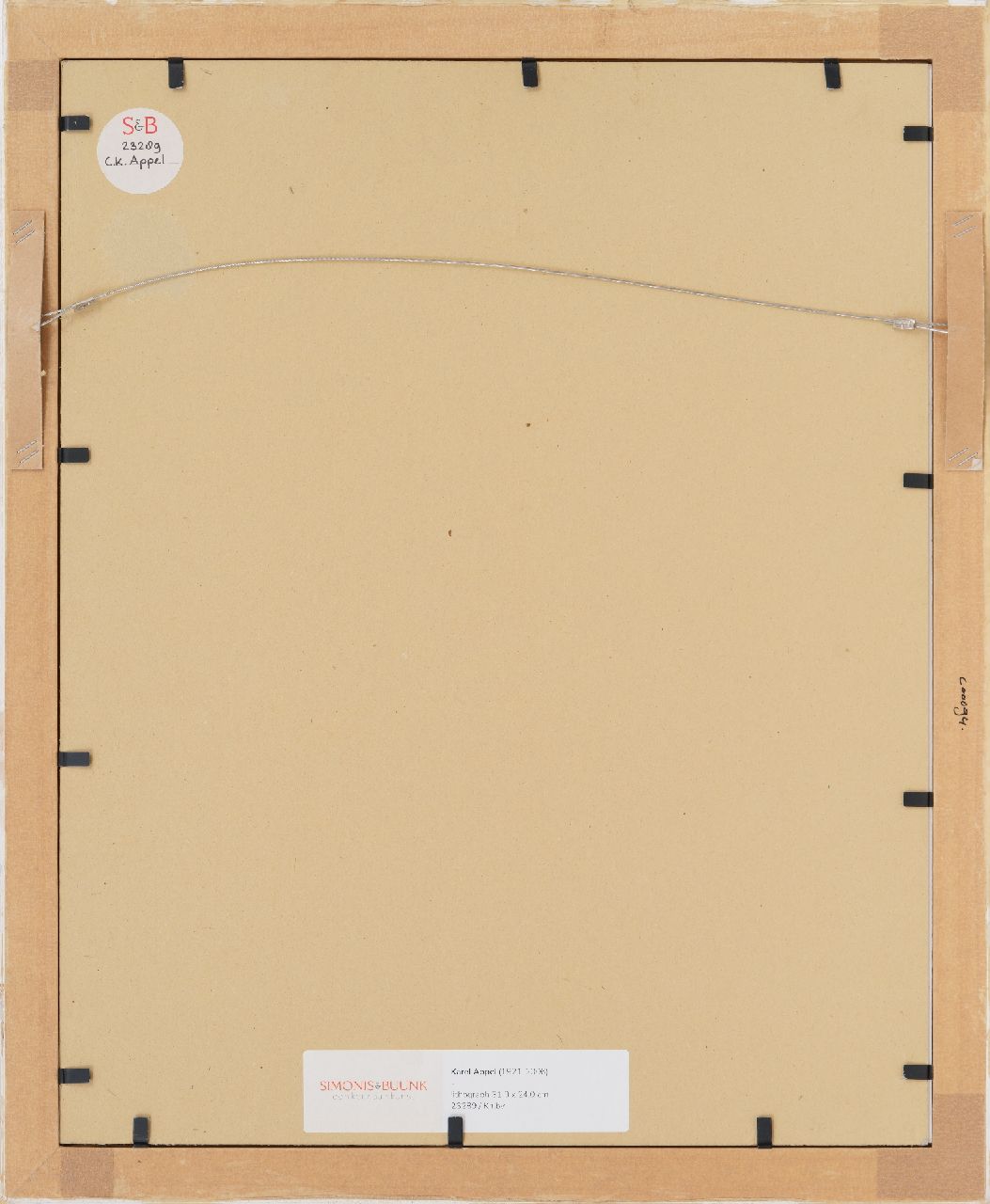 Karel Appel war einer der Hauptfiguren der nachkriegs CoBrA-Bewegung (1948-1951). Sein Werk sieht man als repräsentativ für die Ideale dieser Gruppe von Malern, die in ihre Werke den Widerstand ausdruckten gegen die traditionelle Malerei mit ihren Regeln und Tabus. In seiner CoBra-Zeit malte Appel Fabeltiere und Phantasiewesen. Nach 1951 wurde sein Malereistil immer stärker, bis dann die Linie und die Farbfläche miteinander verschmelzen zu einer turbulenten, expressiven Farbenmase.