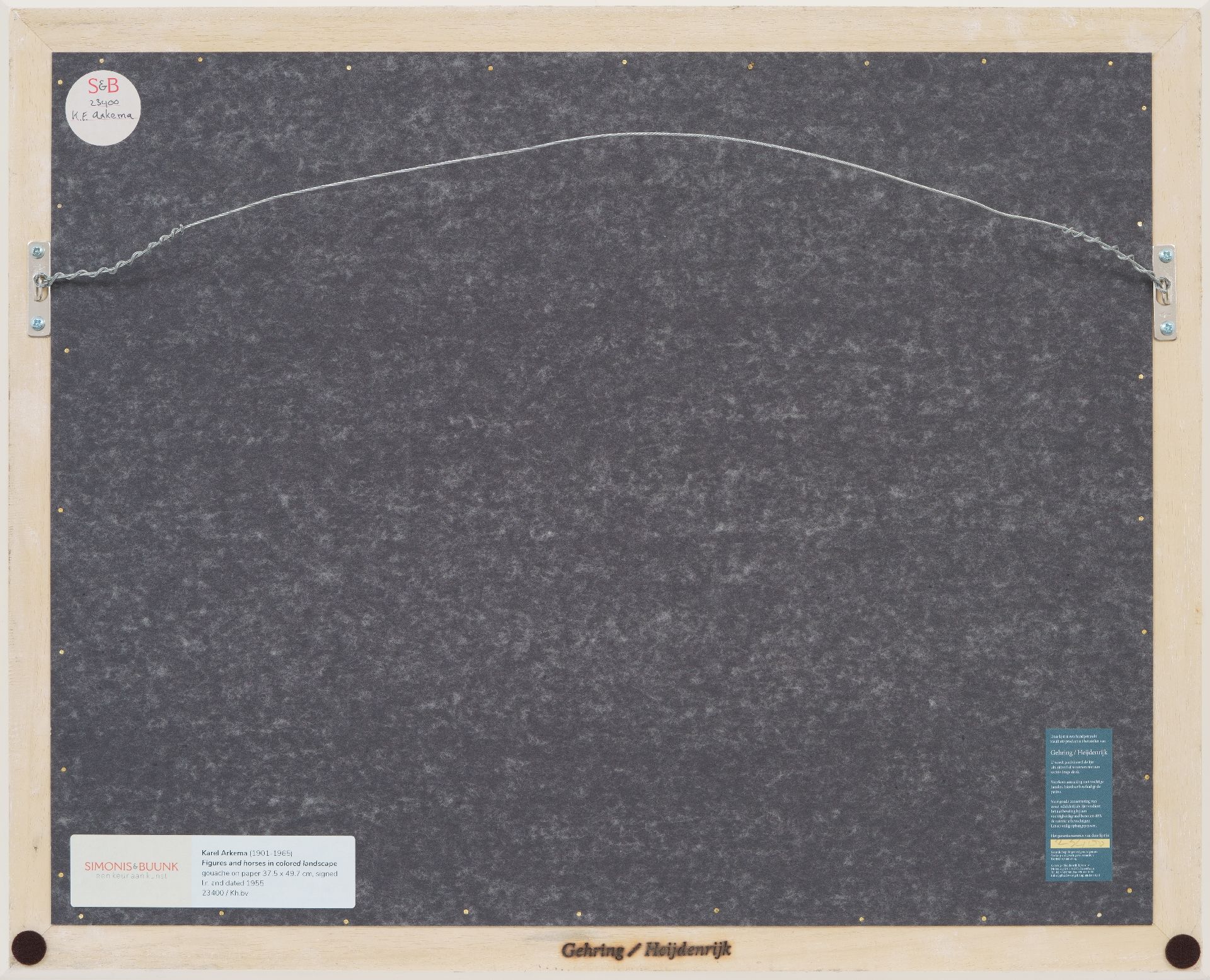 Karel Arkema Kunstwerk • Aquarell • Zeichnung • zu verkaufen Figuren und Pferde in farbiger Landschaft