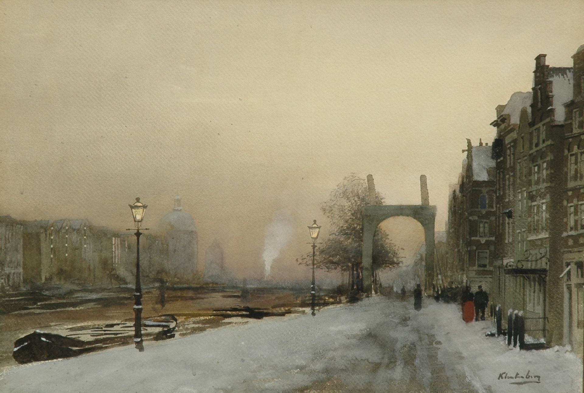 J.C.K. Klinkenberg, Schüler von J.H.L.Meijer und C.Bisschop, war spezialisiert auf die historische Stadtansicht, sonnenüberflutet und die Fassaden, die sich spiegelten im Wasser einer Gracht oder Innenhafen. Zeitgenossen bewunderten die Wirkung von Sonnenlicht in seinen Gemälden: ein starkes, funkelndes Licht, das den weissen Sandstein und den roten Backstein der altholländischen Fassaden aufhellte. Zahllose holländische Städte sind von ihm verewigt worden. Die topographische Erkennbarkeit und impressionistische Weise, wie Klinkenberg Stadtansichten festgelegt hat, verleihen ihm eine würdige Stelle in der reichen Tradition der holländischen Architekturmalerei.