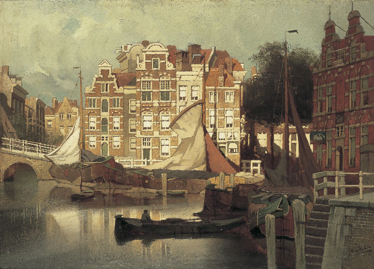 J.C.K. Klinkenberg, Schüler von J.H.L.Meijer und C.Bisschop, war spezialisiert auf die historische Stadtansicht, sonnenüberflutet und die Fassaden, die sich spiegelten im Wasser einer Gracht oder Innenhafen. Zeitgenossen bewunderten die Wirkung von Sonnenlicht in seinen Gemälden: ein starkes, funkelndes Licht, das den weissen Sandstein und den roten Backstein der altholländischen Fassaden aufhellte. Zahllose holländische Städte sind von ihm verewigt worden. Die topographische Erkennbarkeit und impressionistische Weise, wie Klinkenberg Stadtansichten festgelegt hat, verleihen ihm eine würdige Stelle in der reichen Tradition der holländischen Architekturmalerei.