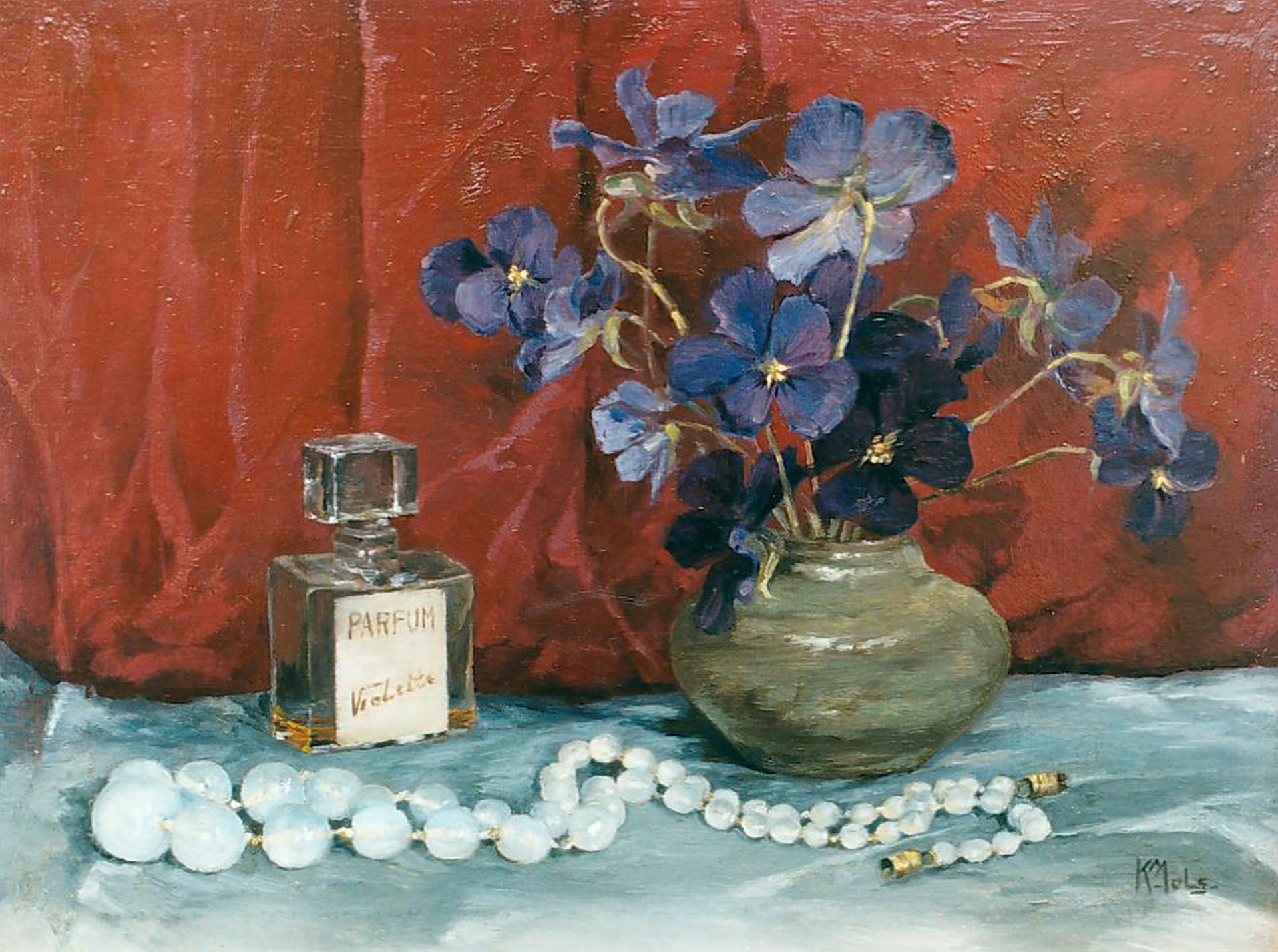 Karel Mols Kunstwerk • Gemälde • zuvor zu verkaufen Still life with violets and a perfume bottle
