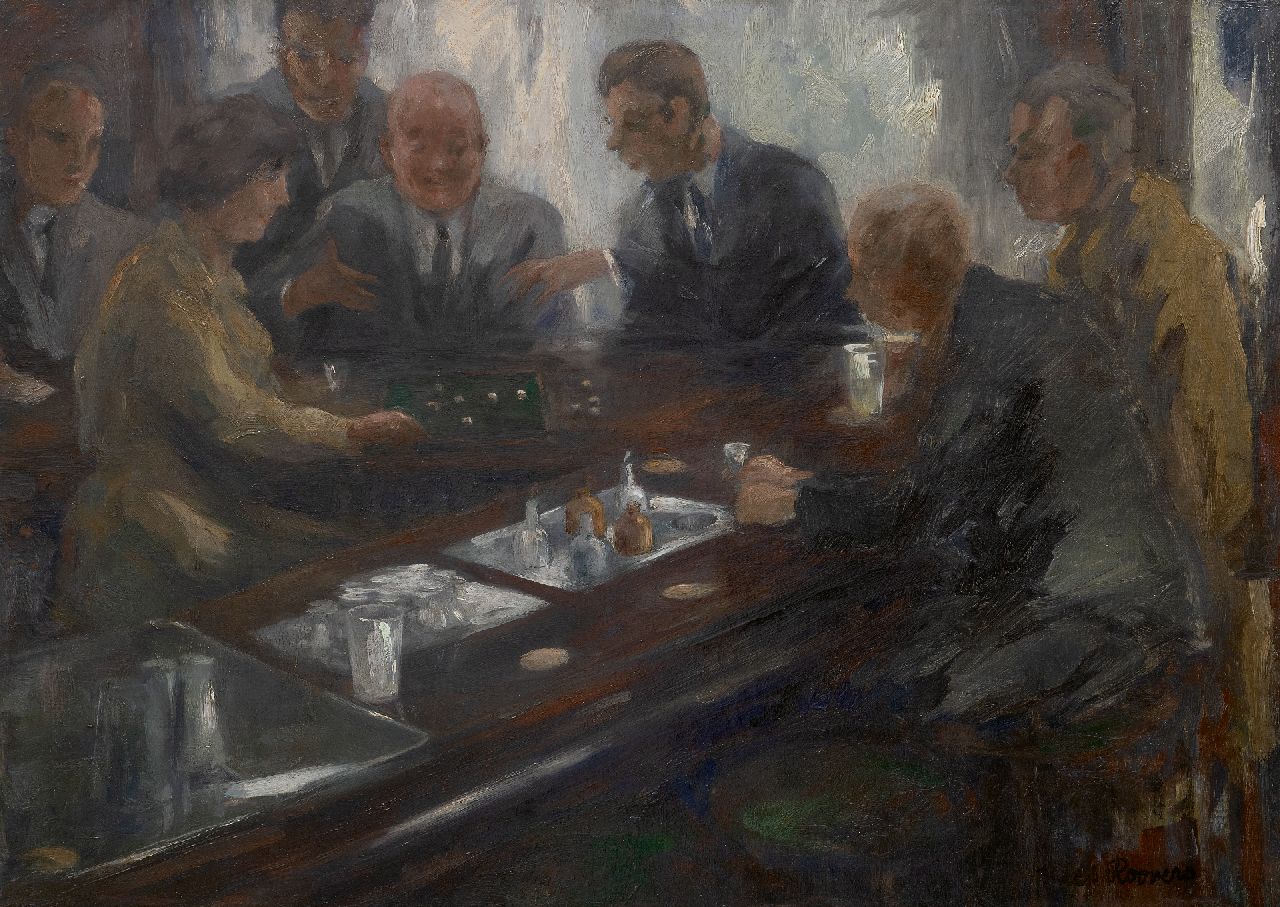 Kees Roovers Kunstwerk • Gemälde • zu verkaufen Würfeln im Café der Posthoorn, Den Haag
