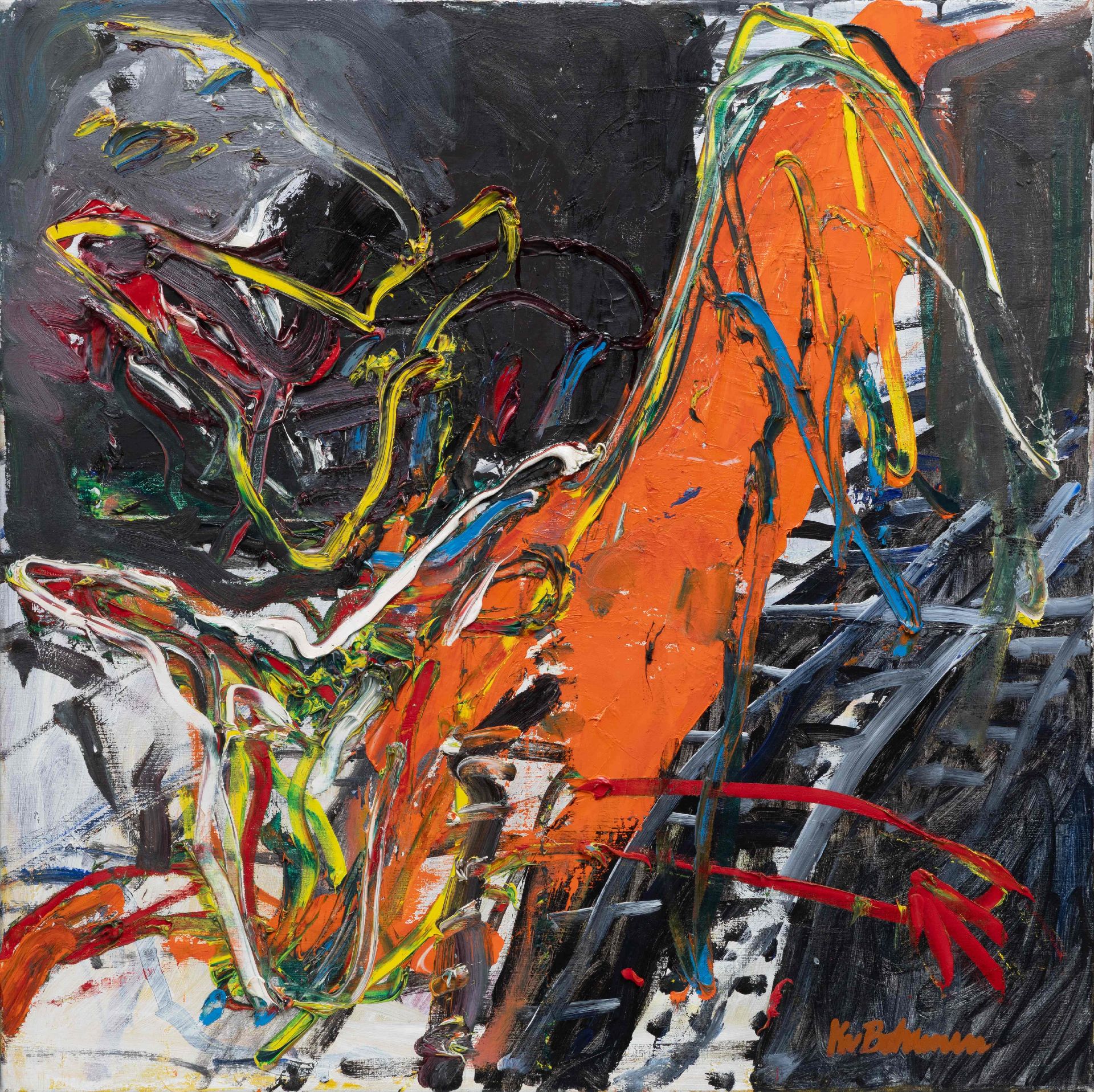Öl auf Leinwand 100,0 x 100,0 cm, Unterzeichnet u.R.