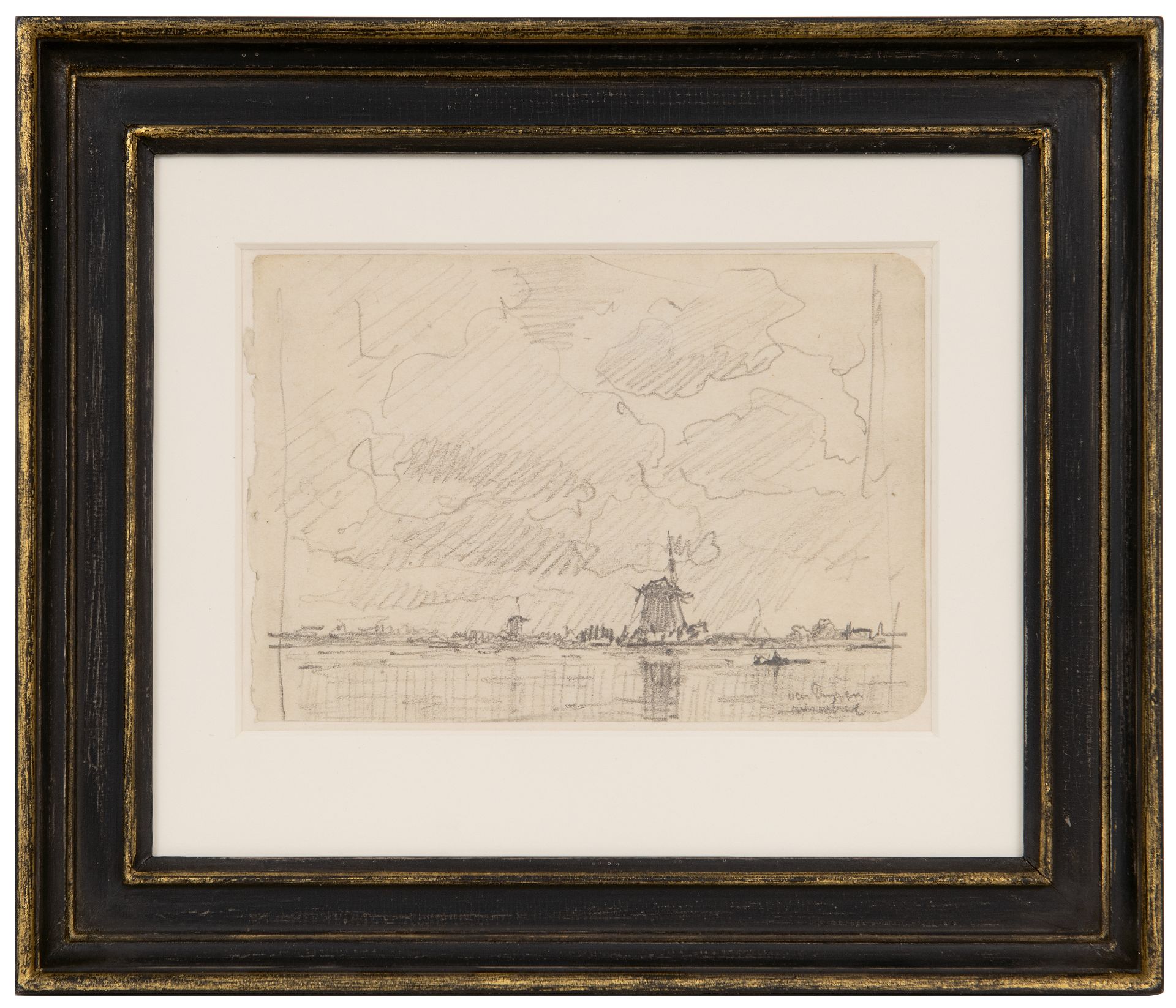 Schwarze Kreide auf Papier 10,9 x 15,9 cm, Unterzeichnet u.r.