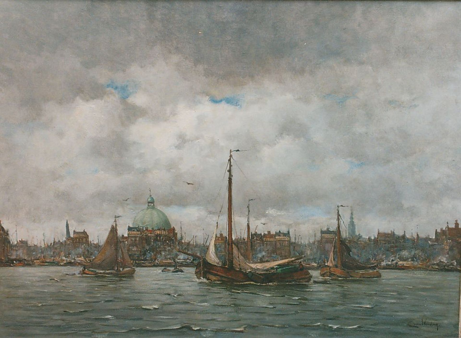 Kees van Waning Kunstwerk • Gemälde • zuvor zu verkaufen A view of the IJ Amsterdam
