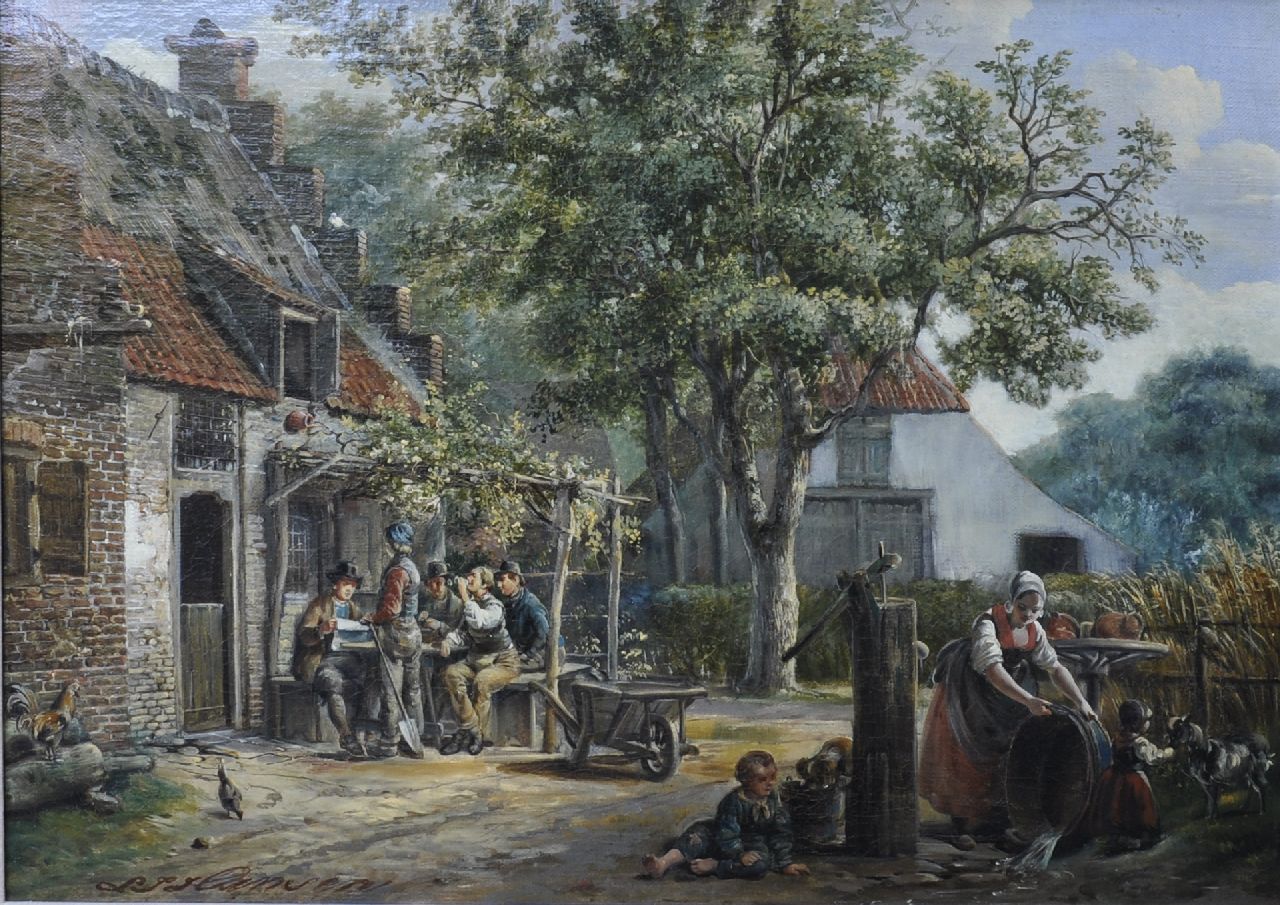 Lambertus Johannes Hansen Kunstwerk • Gemälde • zuvor zu verkaufen Bauernszene mit Trinkern unter der Laube