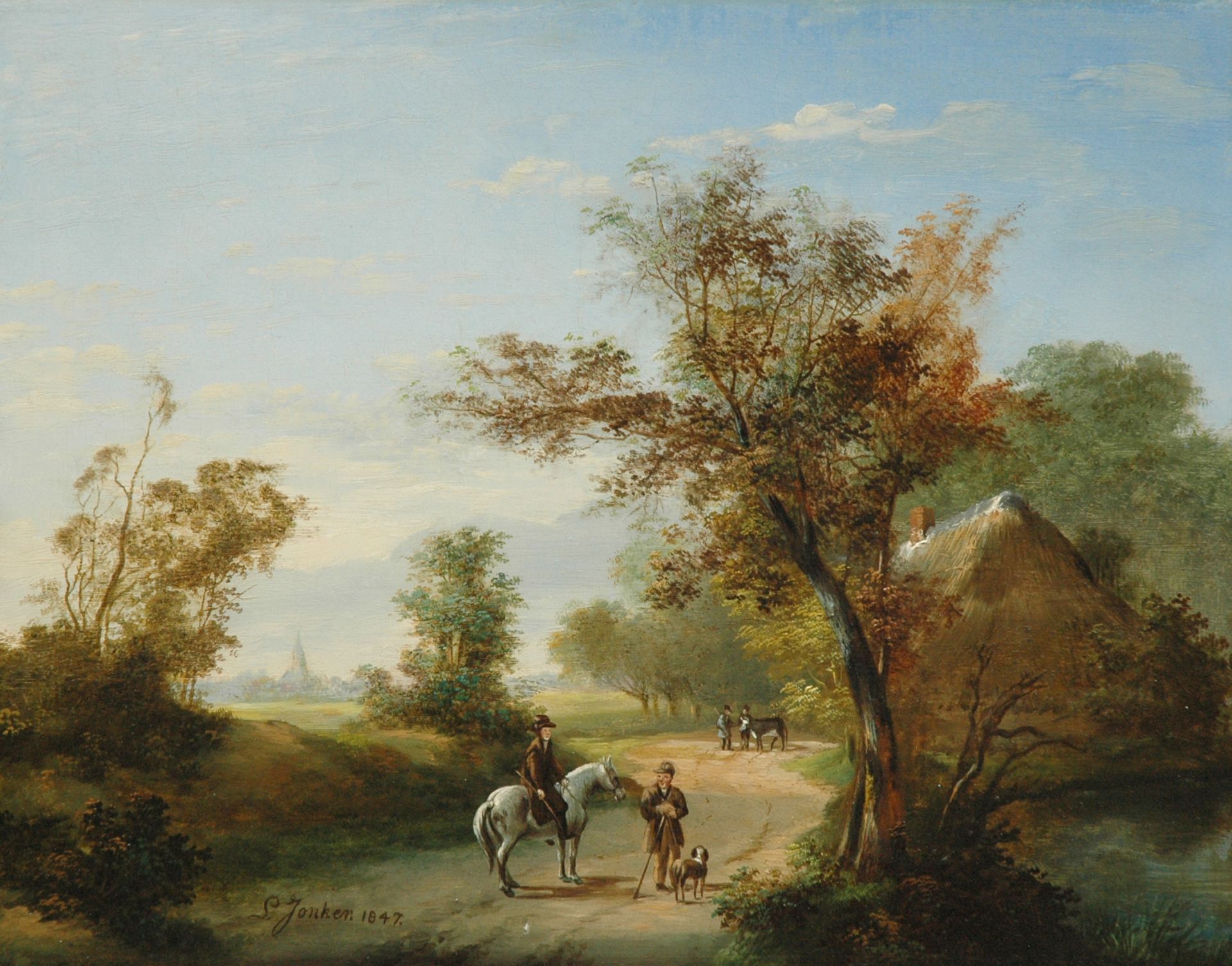 Leendert Jonker Kunstwerk • Gemälde • zuvor zu verkaufen A summer landschape with landfolk and a horseman