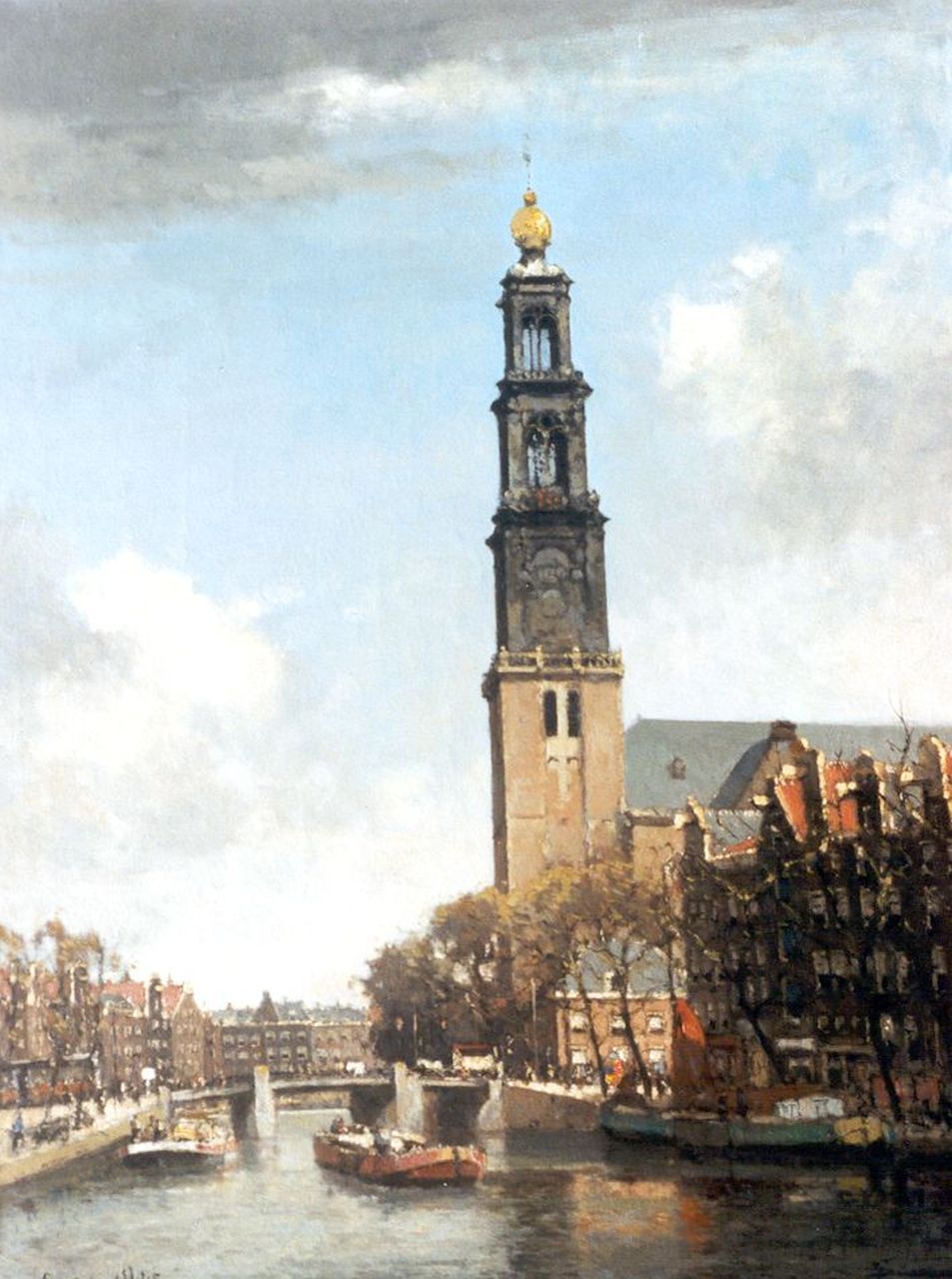 A view of the Prinsengracht, with the Westerkerk beyond, Amsterdam