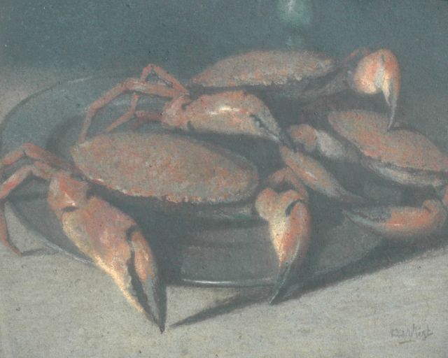 Leendert van der Vlist | Stilleben mit Krabben, Pastell auf Papier, 68,0 x 83,0 cm, Unterzeichnet r.u.