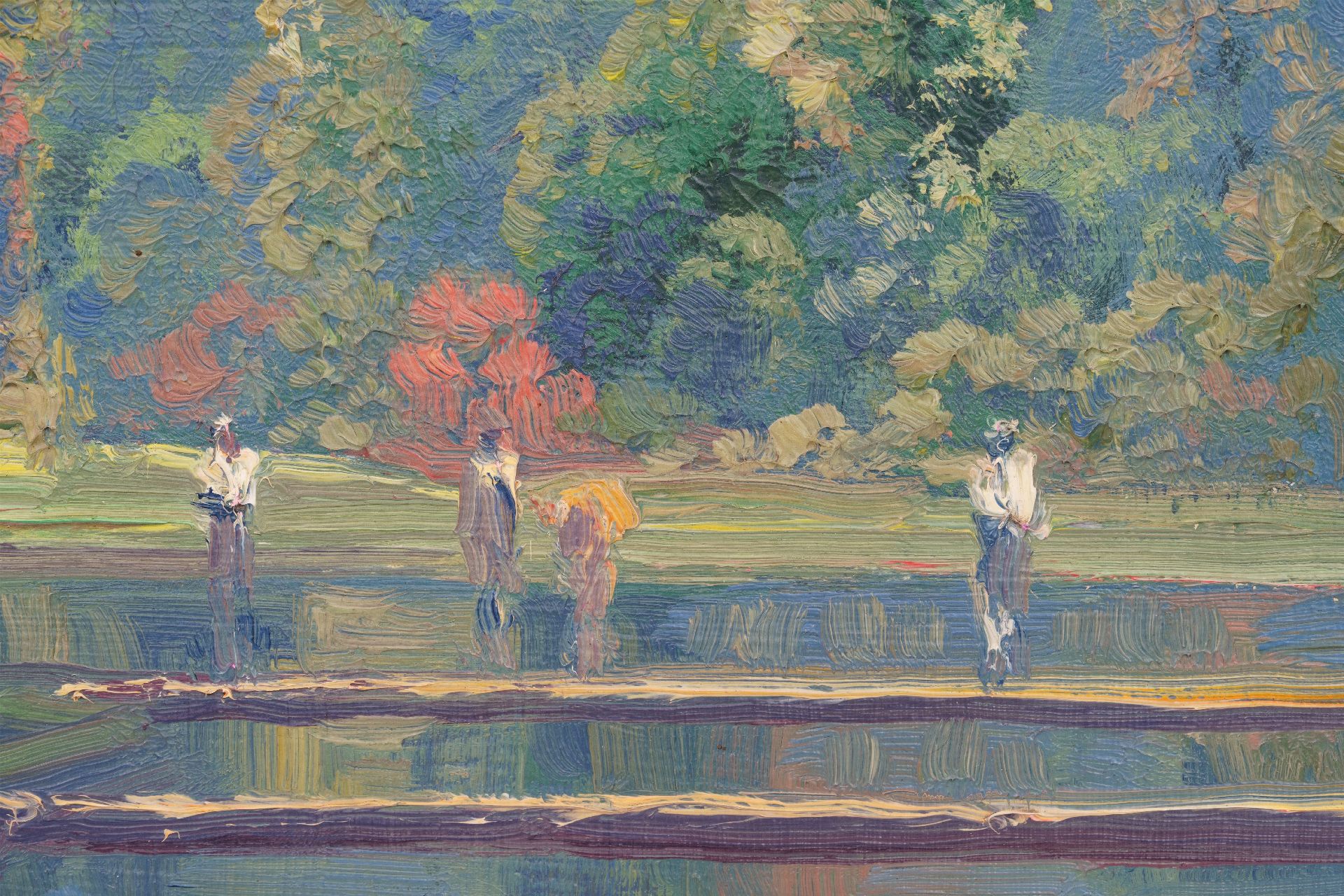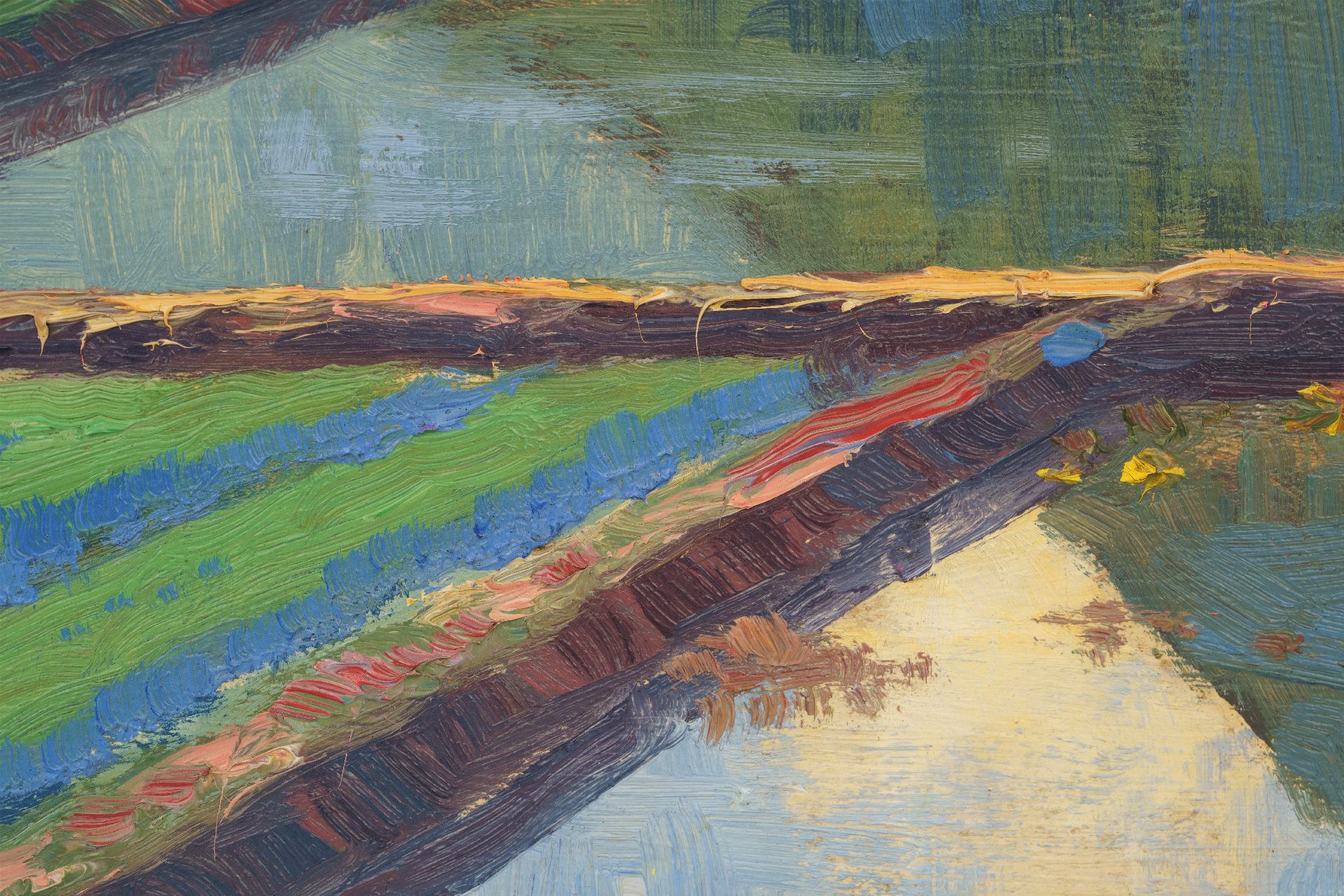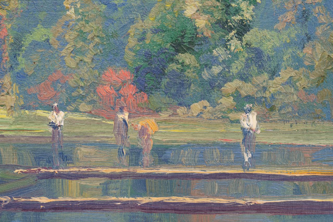 Leo Eland ist einer der wichtigsten Vertreter der indischen Schule. Er wurde 1884 in Salatiga auf der Insel Java geboren. Zwischen 1920 und 1929 kam er endgültig in die Niederlande, wo er in Den Haag lebte und arbeitete. Sein Oeuvre besteht hauptsächlich aus farbenfrohen, impressionistischen Landschaften, die oft mit Figuren geschmückt sind. Er fertigte auch Dioramen und Panoramabilder für Kolonialausstellungen an.