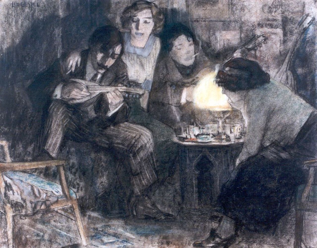 Leo Gestel Kunstwerk • Aquarell • Zeichnung • zuvor zu verkaufen Having a party at the Boendermaker's house