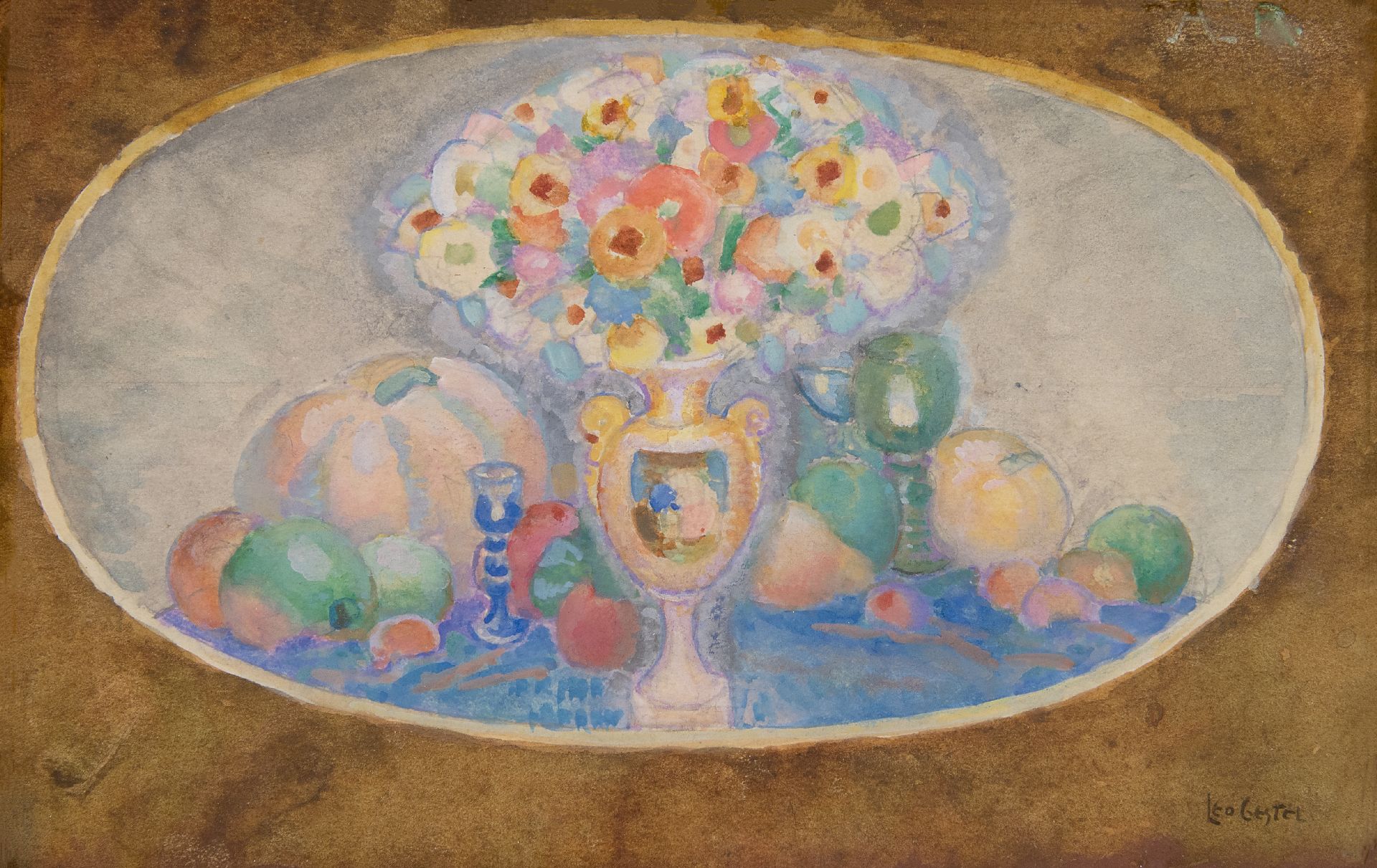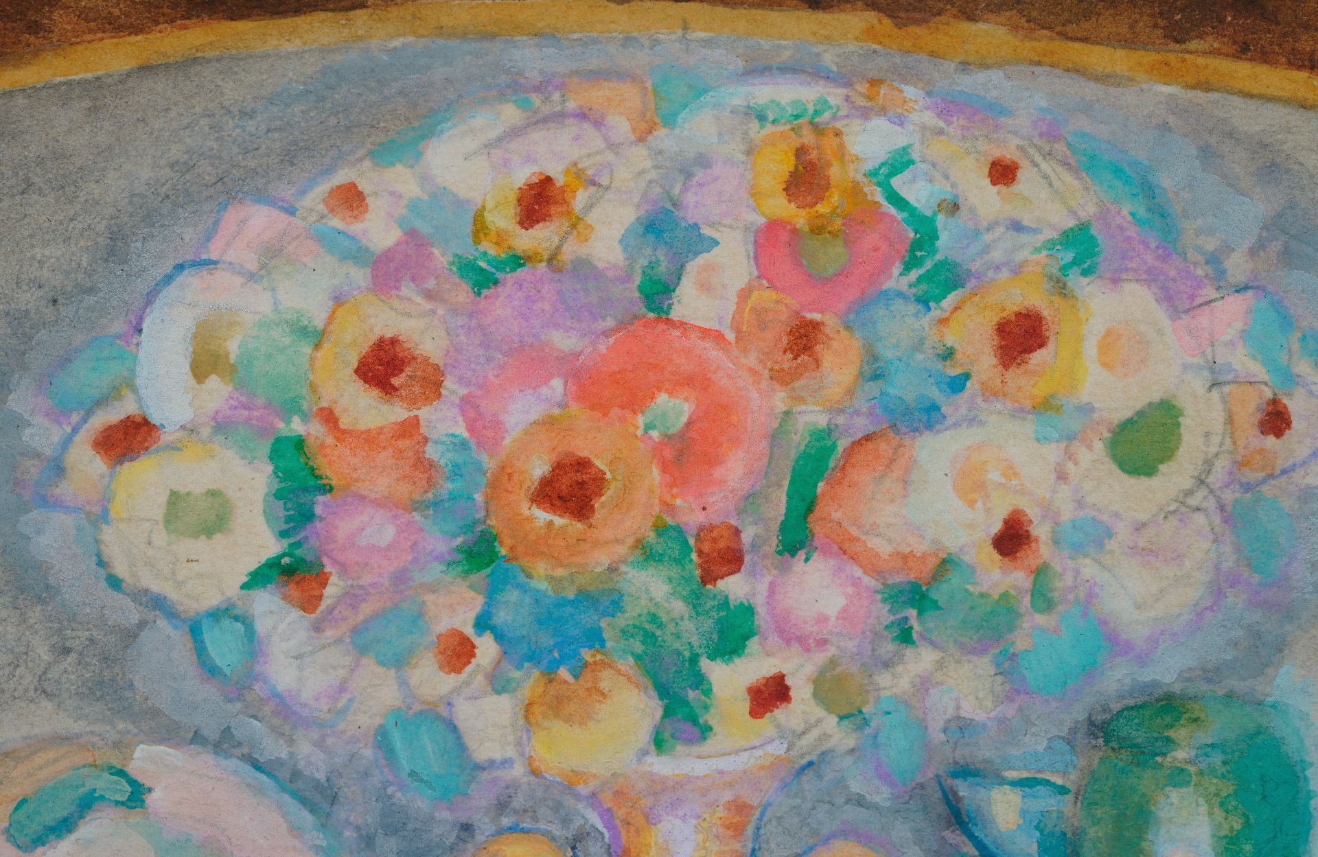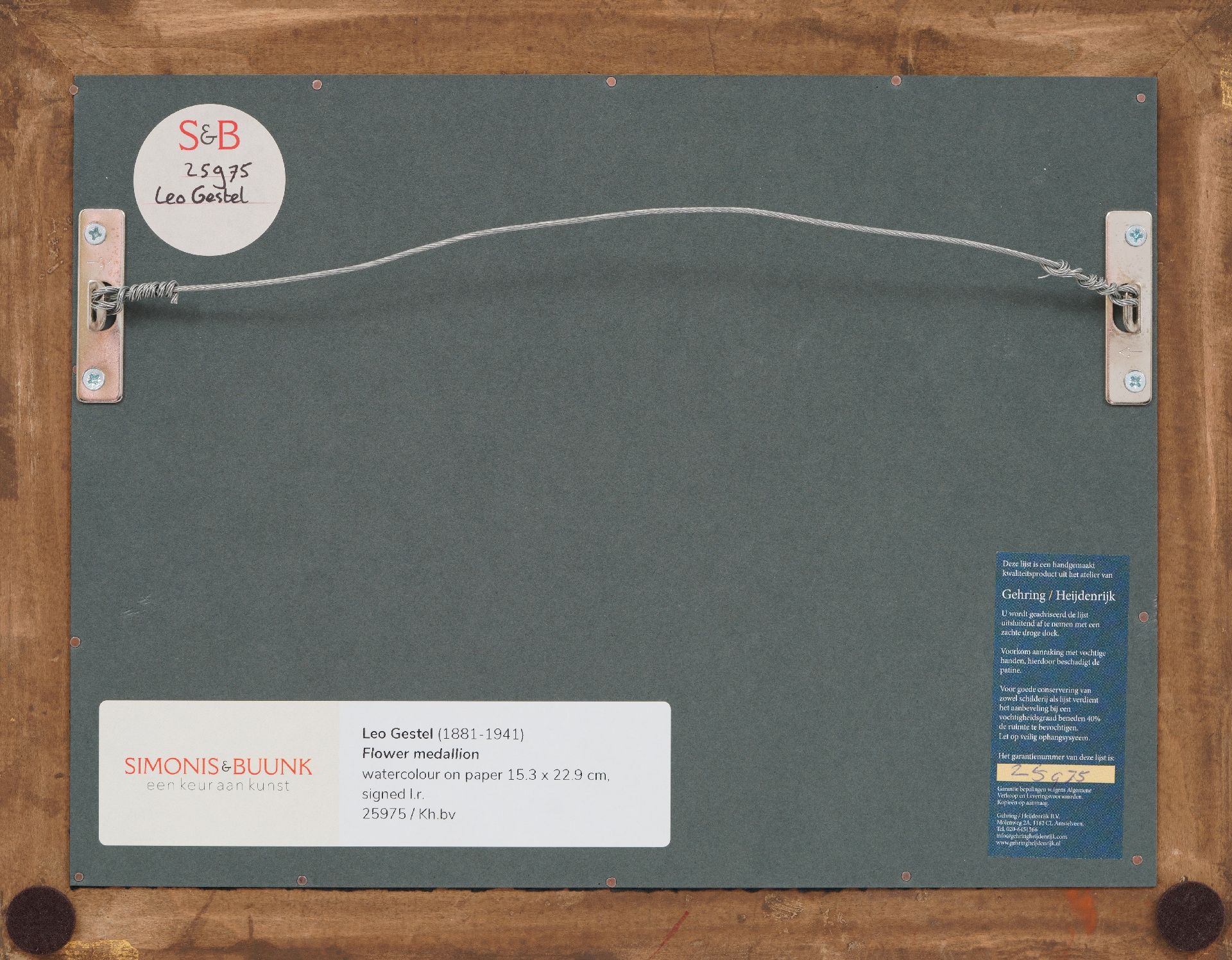 Leo Gestel Kunstwerk • Aquarell • Zeichnung • zu verkaufen Medaillon mit Blumenstilleben