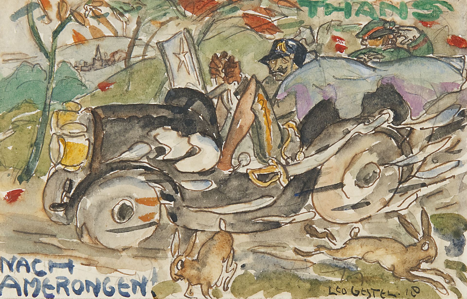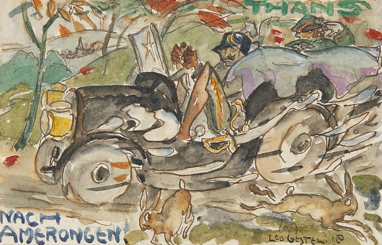 Leo Gestel Kunstwerk • Aquarell • Zeichnung • zuvor zu verkaufen Nach Amerongen: Emperor Wilhelm II on his return