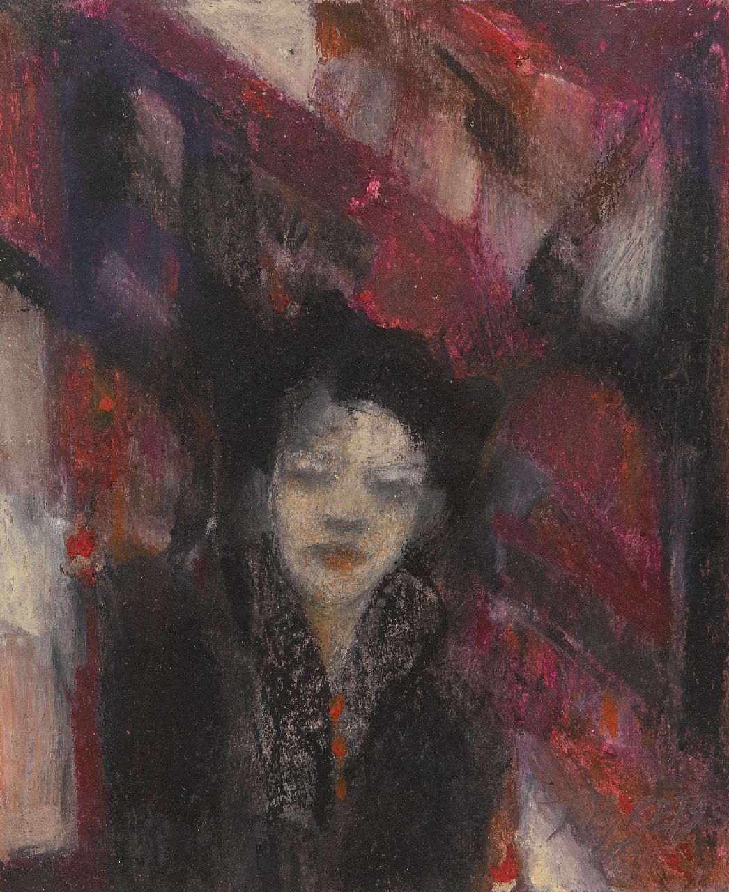 Ölpastell auf Papier 16,7 x 13,7 cm, Unterzeichnet u.r. und verso auf Etikett und datiert '08 und verso auf Etikett