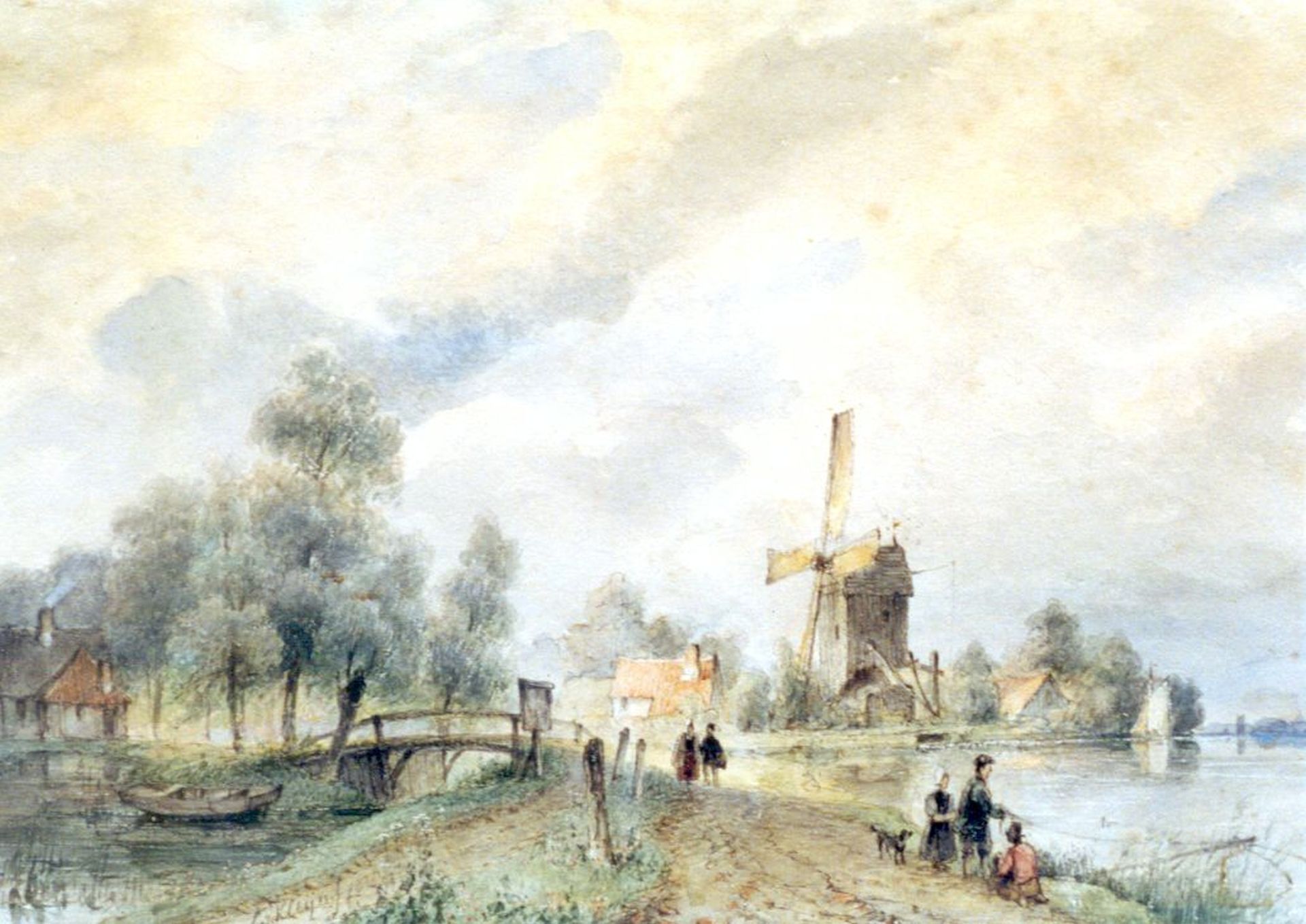 Lodewijk Johannes Kleijn Kunstwerk • Aquarell • Zeichnung • zuvor zu verkaufen A river landscape with a windmill