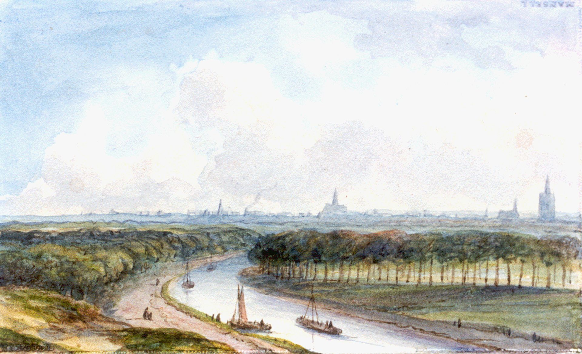 Lodewijk Johannes Kleijn Kunstwerk • Aquarell • Zeichnung • zuvor zu verkaufen A view of 'de Trekvliet', with the Hague in the distance