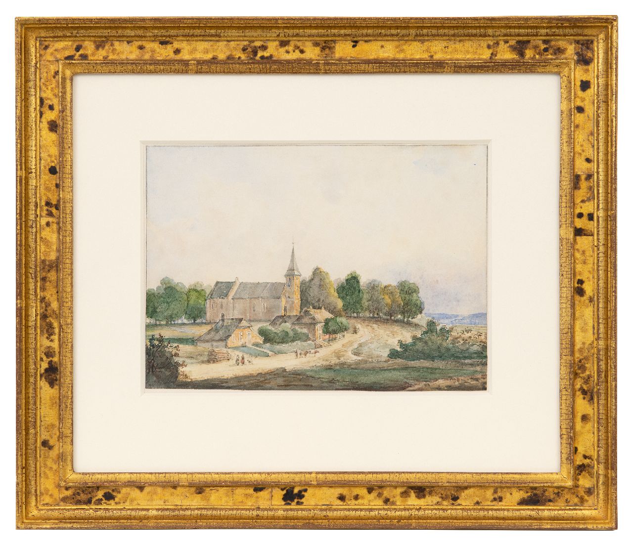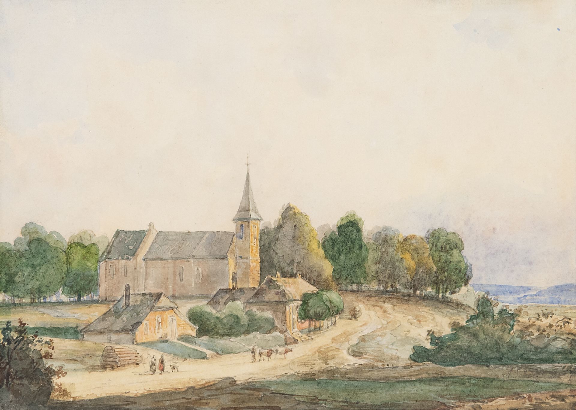 Lodewijk Johannes Kleijn Kunstwerk • Aquarell • Zeichnung • zu verkaufen Kirche in hügeliger Landschaft