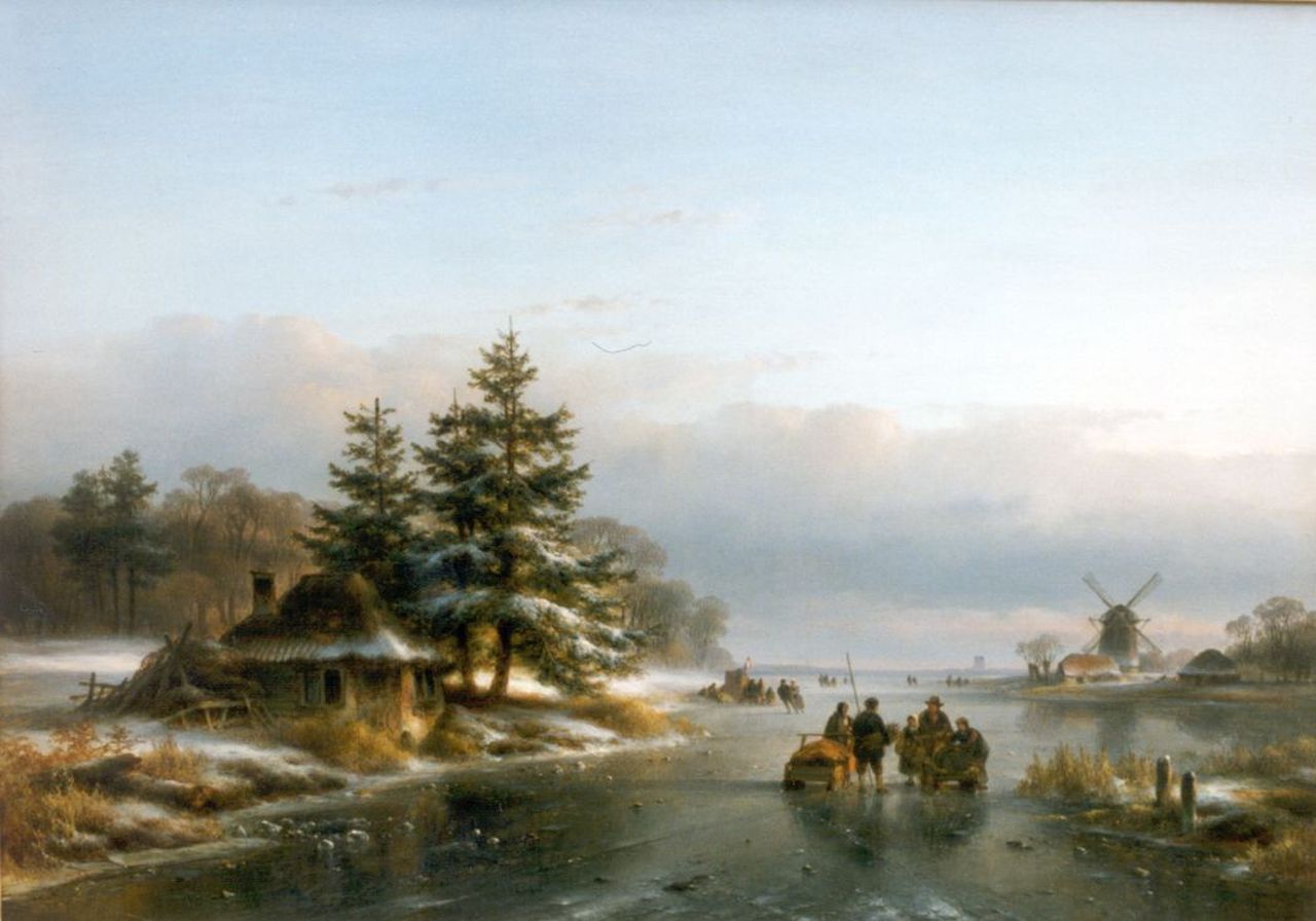 Lodewijk Johannes Kleijn Kunstwerk • Gemälde • zuvor zu verkaufen A frozen waterway with skaters