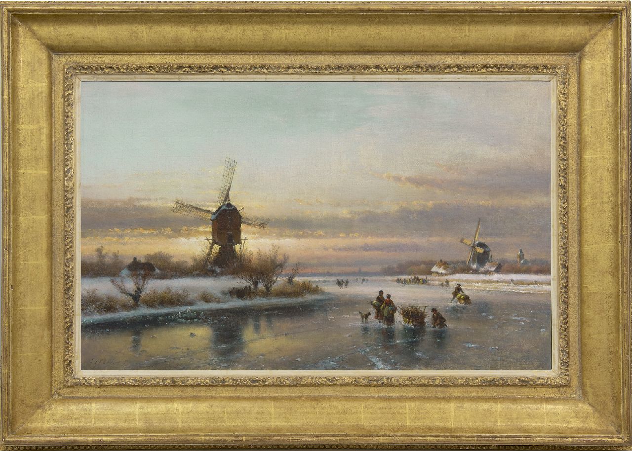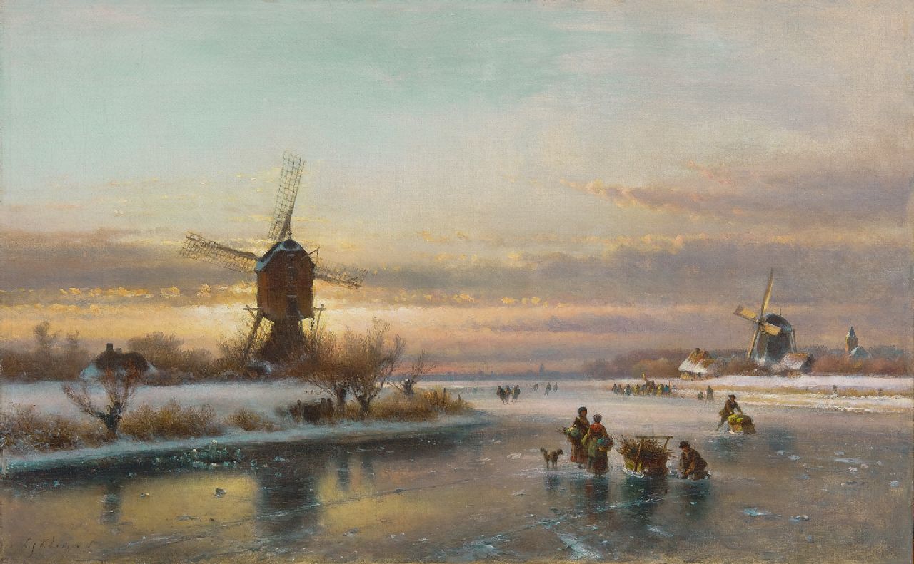 Lodewijk Johannes Kleijn Kunstwerk • Gemälde • zuvor zu verkaufen Eisansicht mit Schlittschuhläufern