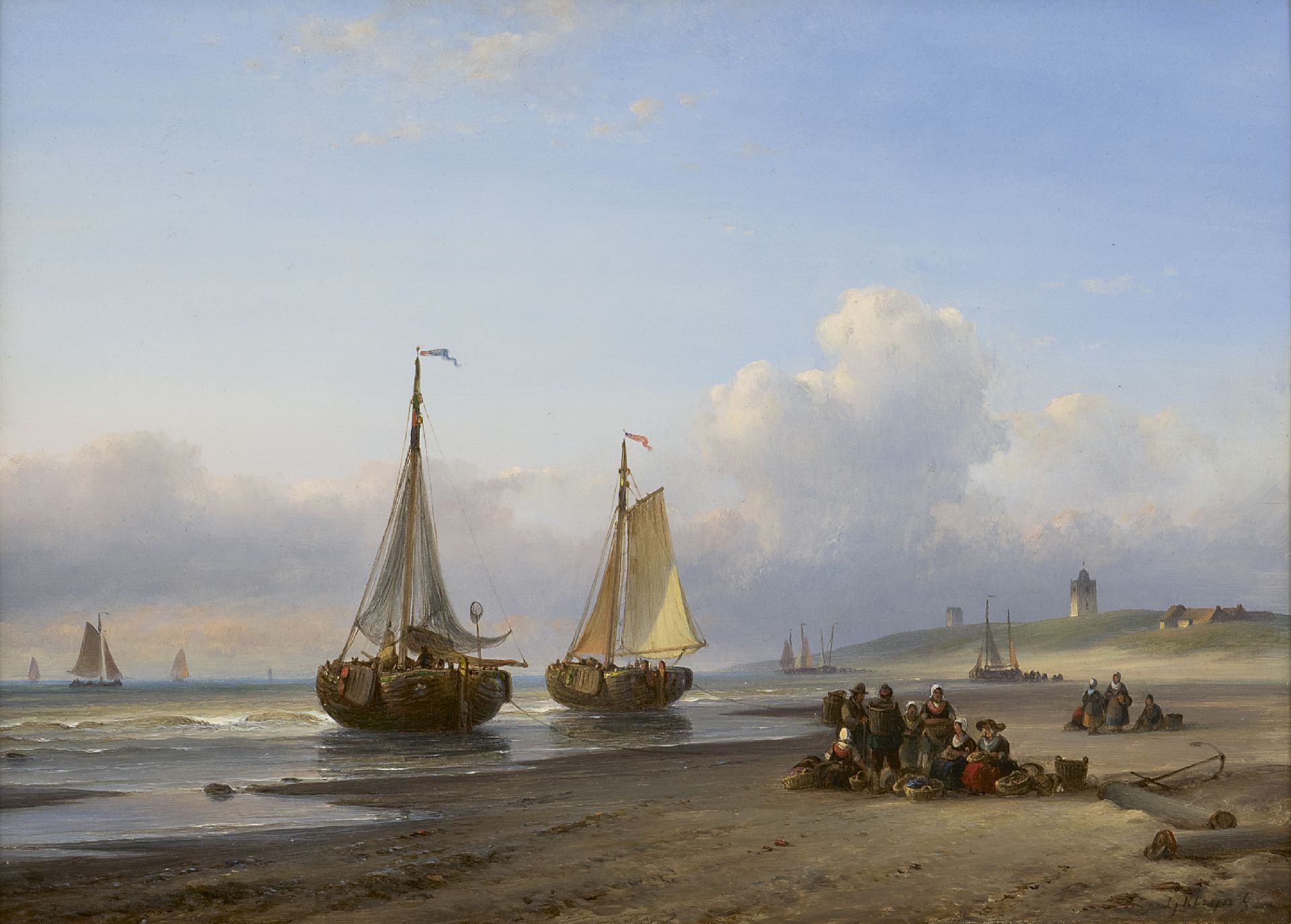Lodewijk Johannes Kleijn Kunstwerk • Gemälde • zuvor zu verkaufen Fischerboote und Fischer auf dem Strand von Scheveningen