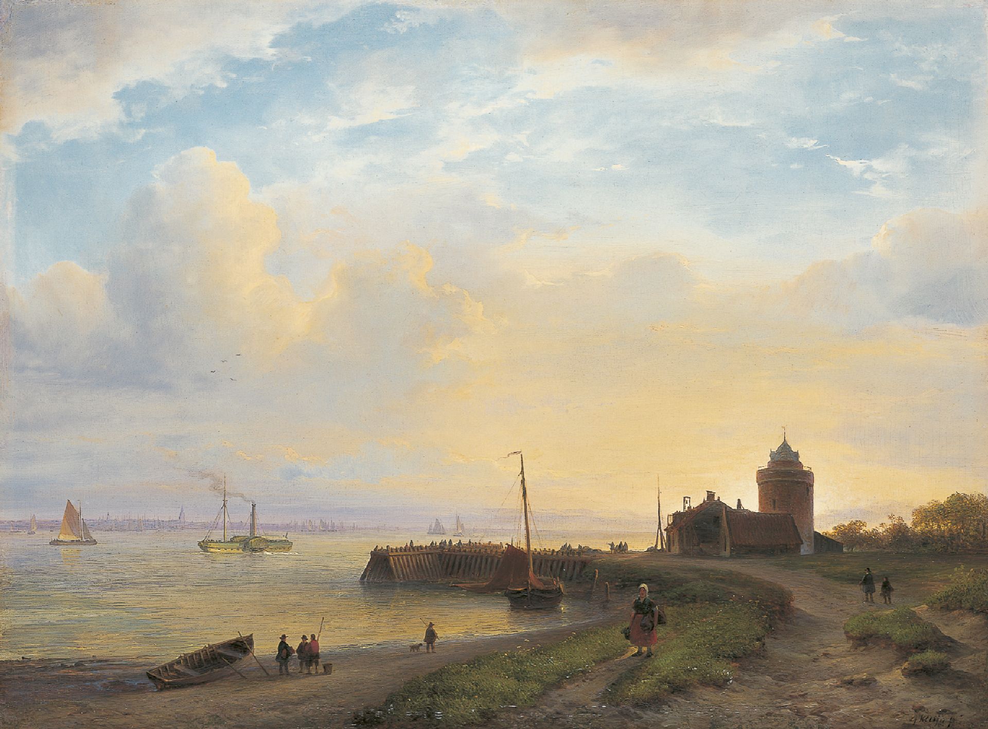 Lodewijk Johannes Kleijn Kunstwerk • Gemälde • zuvor zu verkaufen Panoramic view on a river with sailing vessels and radar boat