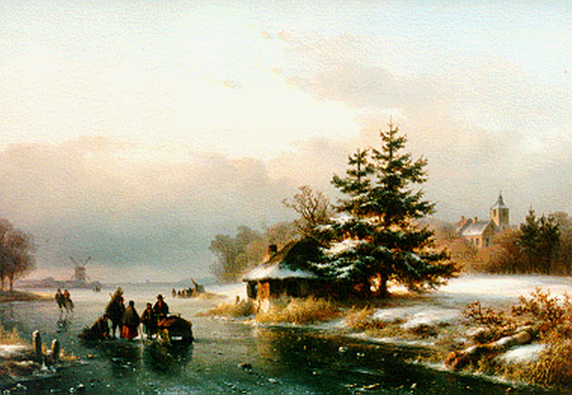 Lodewijk Johannes Kleijn Kunstwerk • Gemälde • zuvor zu verkaufen Skaters on a frozen waterway