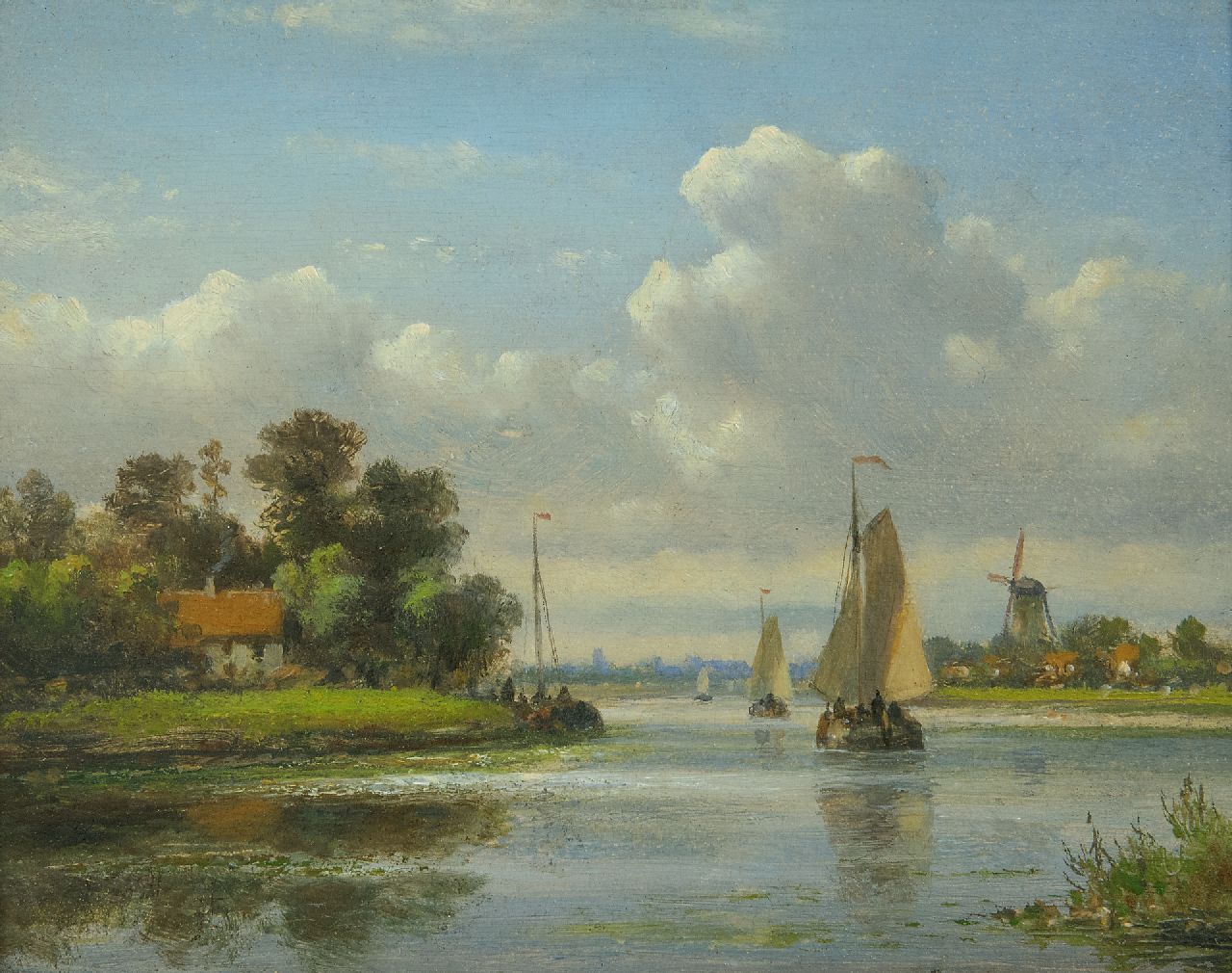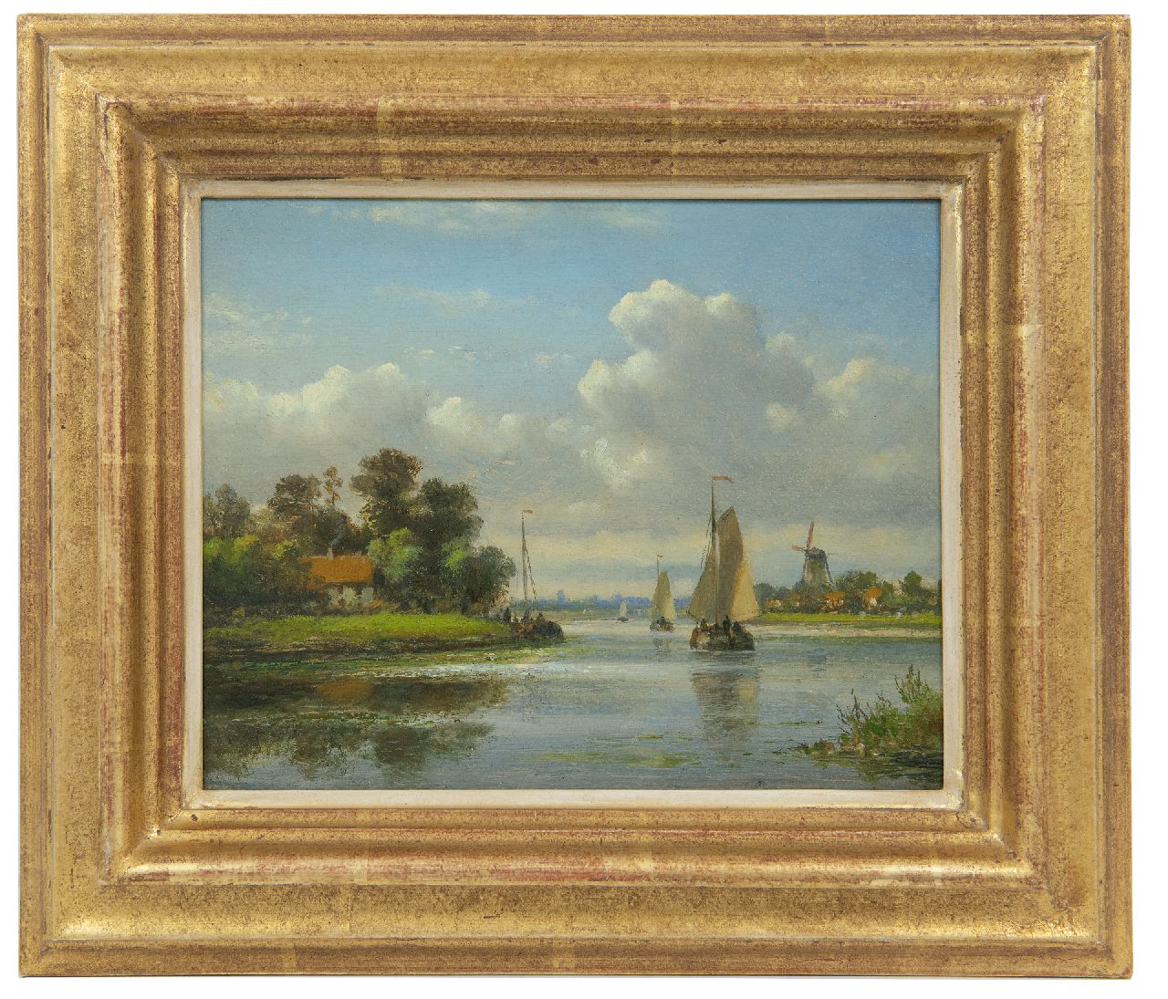 Lodewijk Johannes Kleijn Kunstwerk • Gemälde • zuvor zu verkaufen Sommerliche Flussansicht mit Segelschiffen