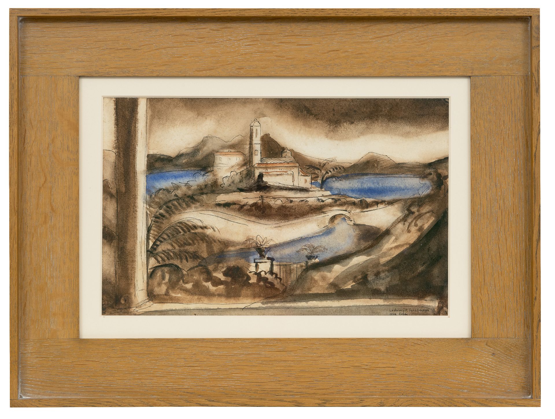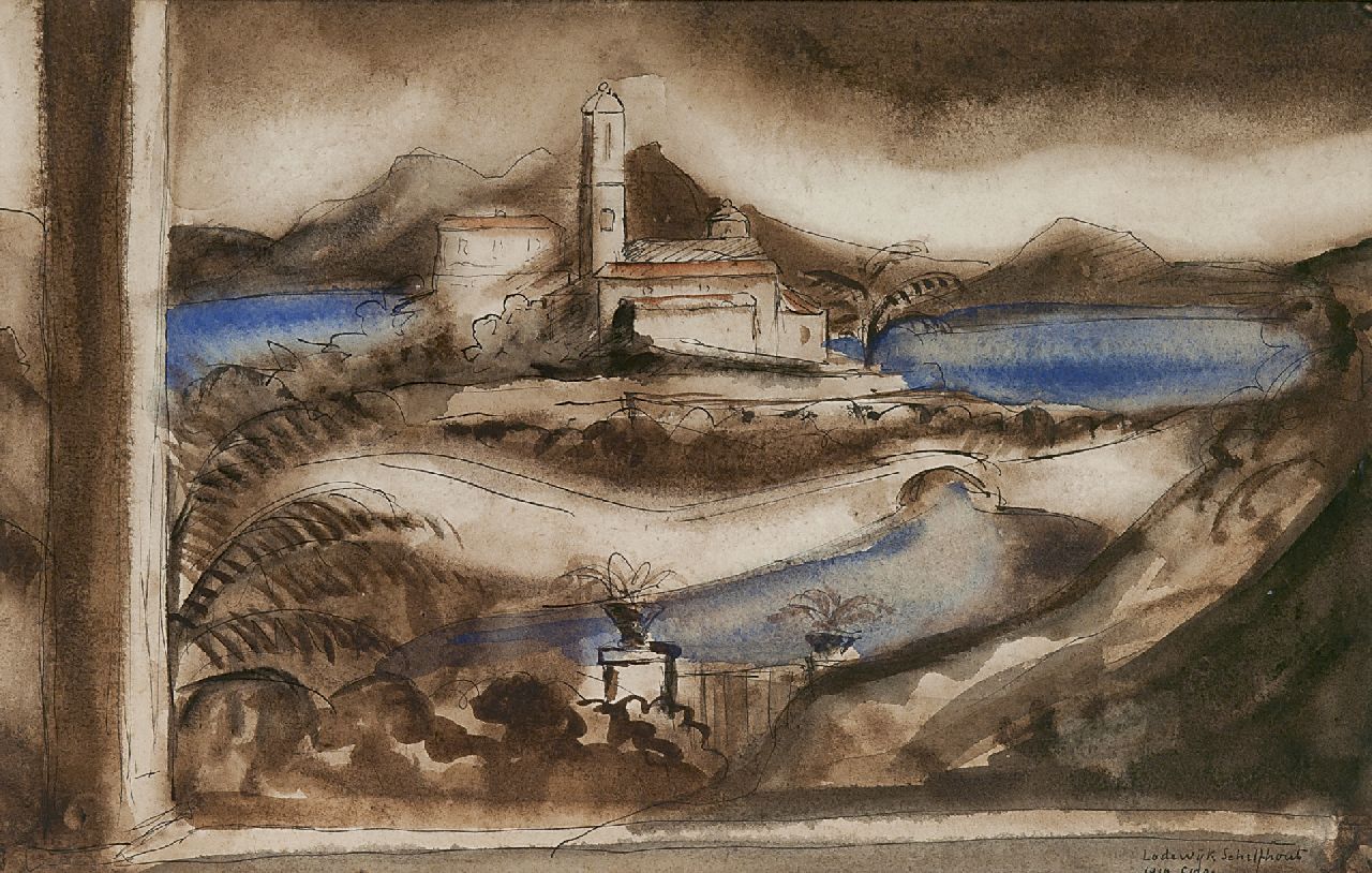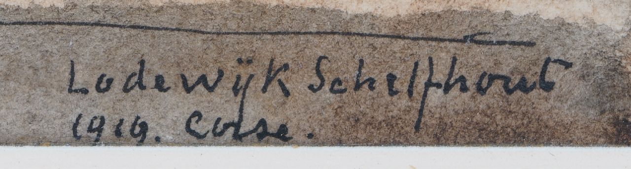 Lodewijk Schelfhout Kunstwerk • Aquarell • Zeichnung • zu verkaufen Ansicht auf Bastia, Korsika
