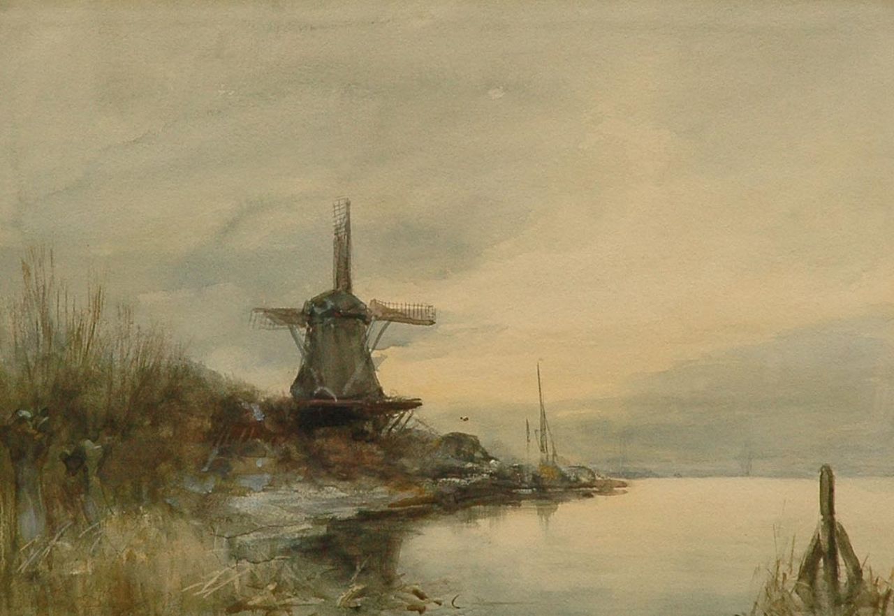Louis Apol Kunstwerk • Aquarell • Zeichnung • zuvor zu verkaufen A windmill by the water
