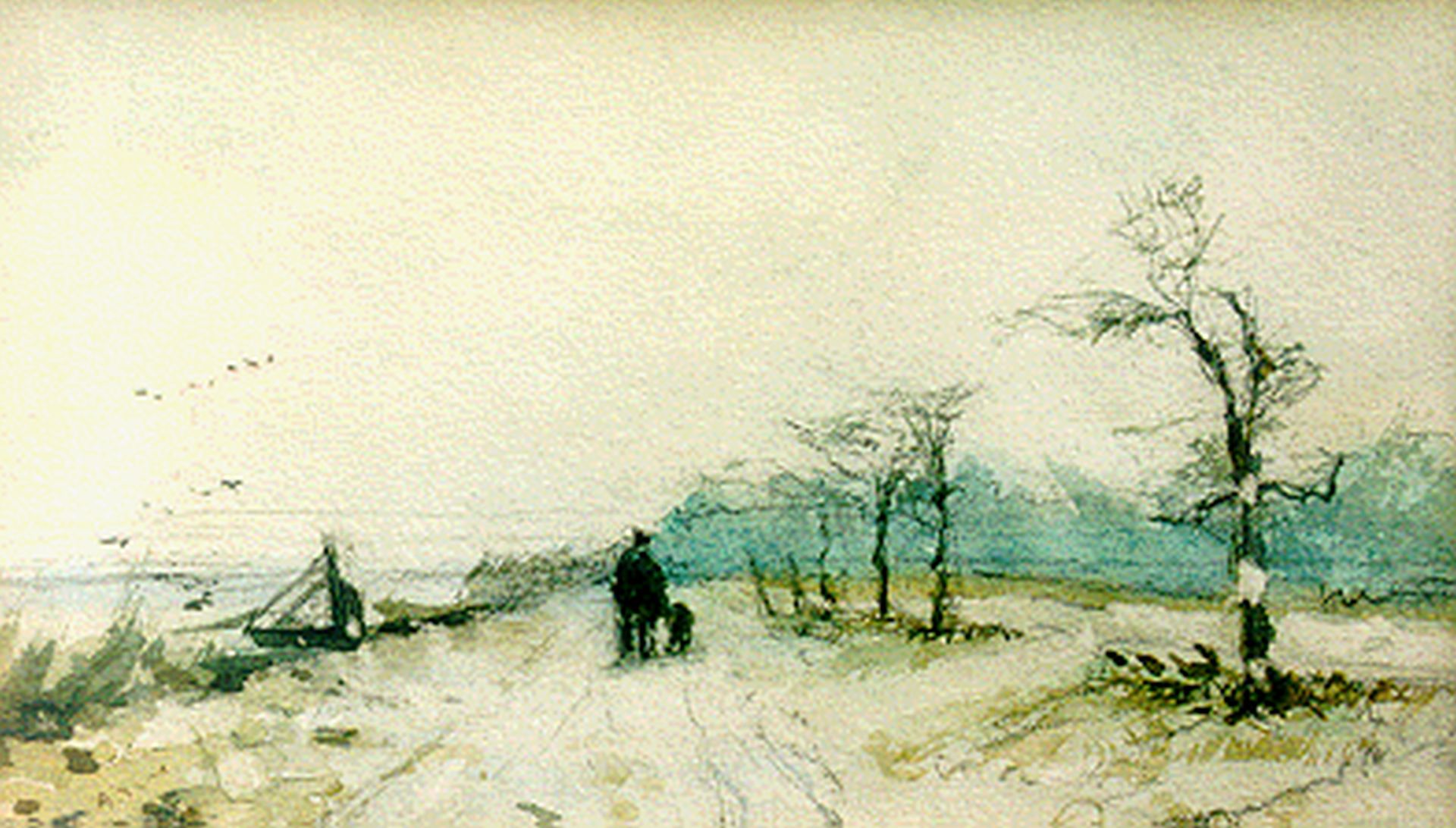 Louis Apol Kunstwerk • Aquarell • Zeichnung • zuvor zu verkaufen Figures on a path in autumn