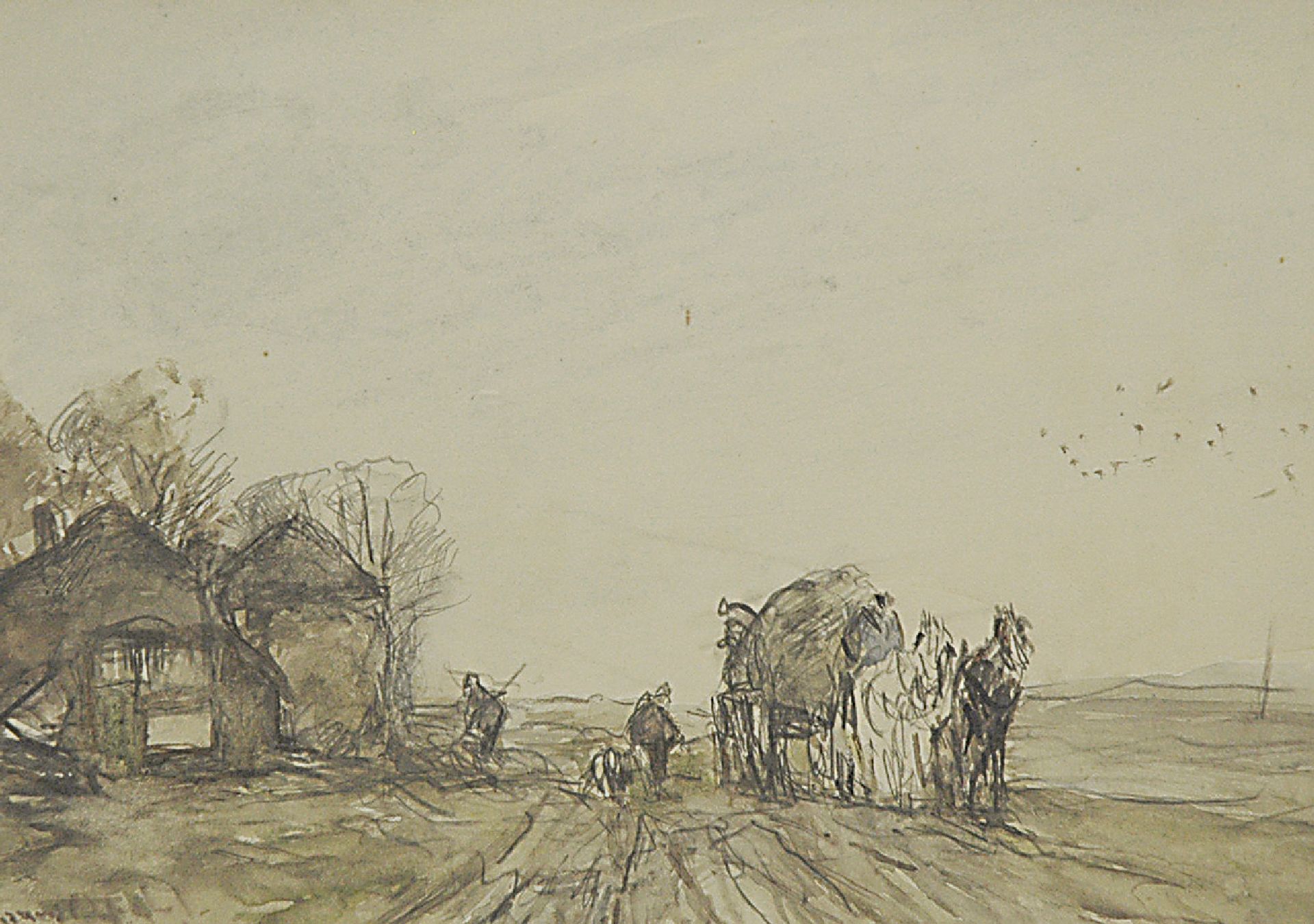 Louis Apol Kunstwerk • Aquarell • Zeichnung • zuvor zu verkaufen Loading the hay cart