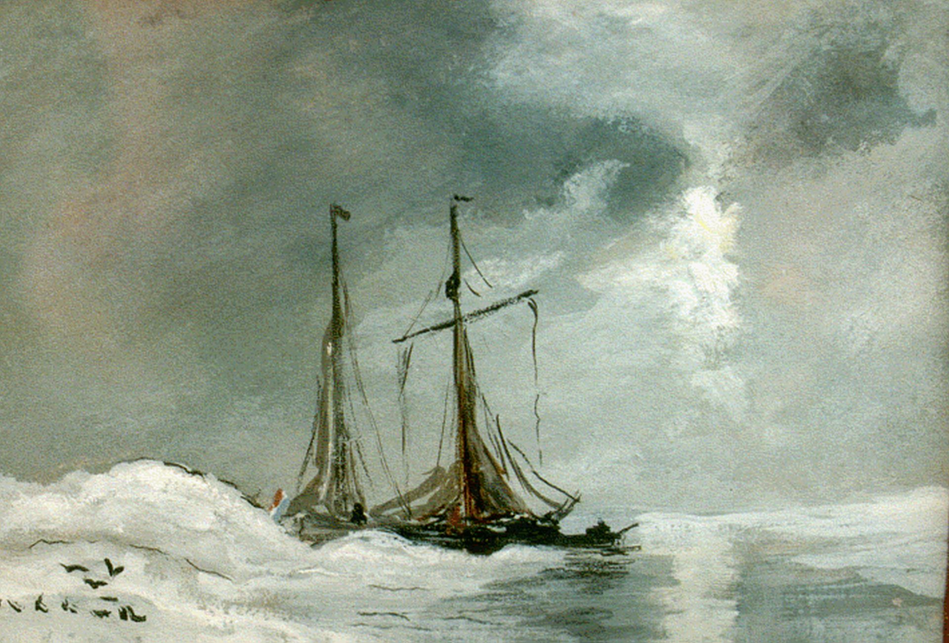 Louis Apol Kunstwerk • Aquarell • Zeichnung • zuvor zu verkaufen Two-master, Nova Zembla