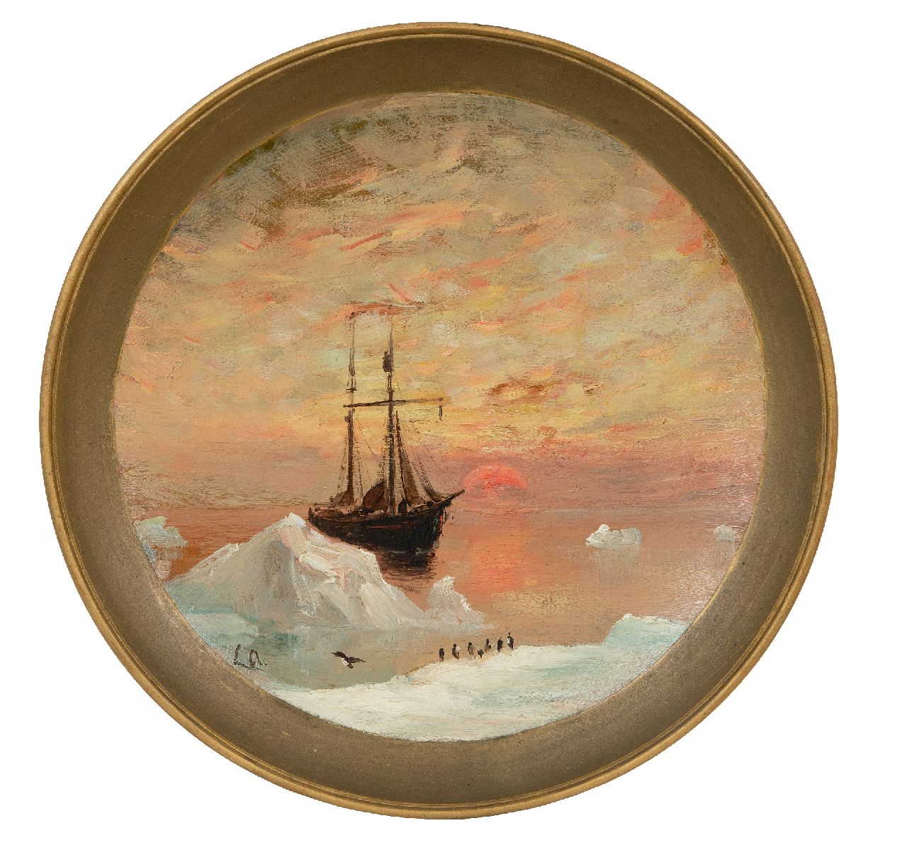 Louis Apol Kunstwerk • Gemälde • zu verkaufen Der Willem Barentsz auf Nova Zembla bei Sonnenuntergang
