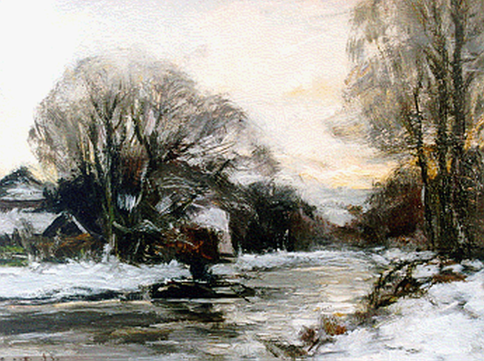 Louis Apol | Schneelandschaft bei Sonnenuntergang, Öl auf Leinwand, 31,5 x 42,4 cm, Unterzeichnet u.l.