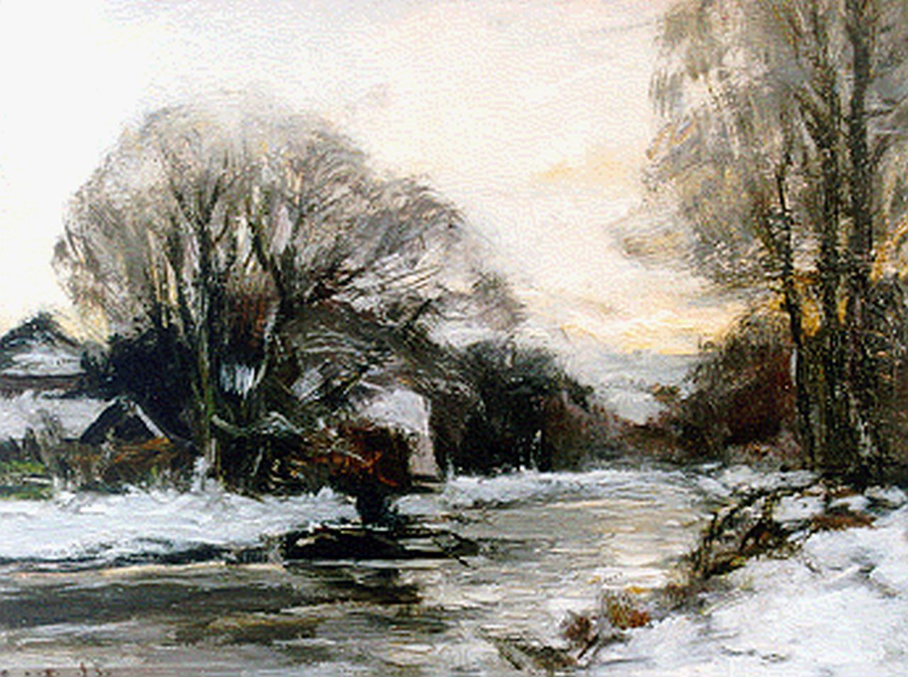 Louis Apol | Bauernhof in beschneiter Landschaft, Öl auf Leinwand, 34,3 x 46,2 cm, Unterzeichnet u.l.