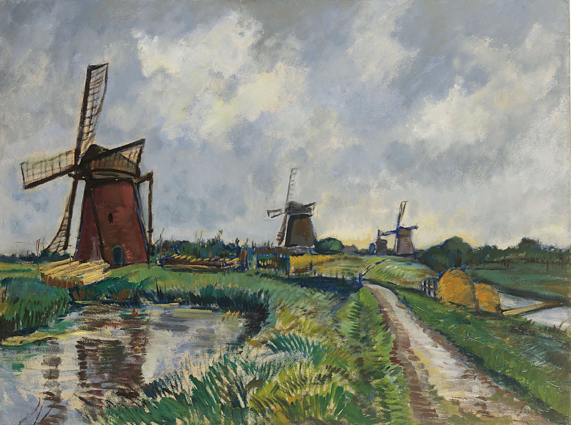 Louis Saalborn Kunstwerk • Gemälde • zuvor zu verkaufen Windmühlen in einer Reihe in Kinderdijk