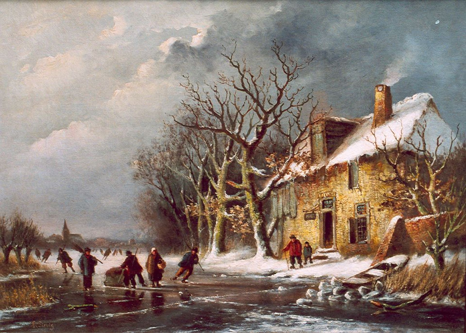 Louis Sierich Kunstwerk • Gemälde • zuvor zu verkaufen Skaters on a frozen river
