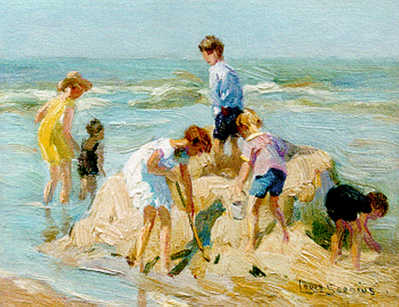 Louis Soonius Kunstwerk • Gemälde • zuvor zu verkaufen Children playing on the beach