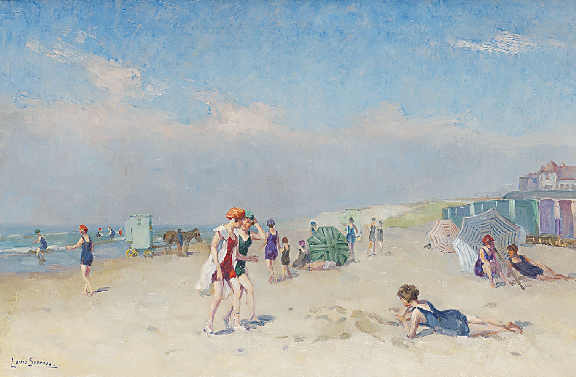 Louis Soonius Kunstwerk • Gemälde • zuvor zu verkaufen Figures on the beach