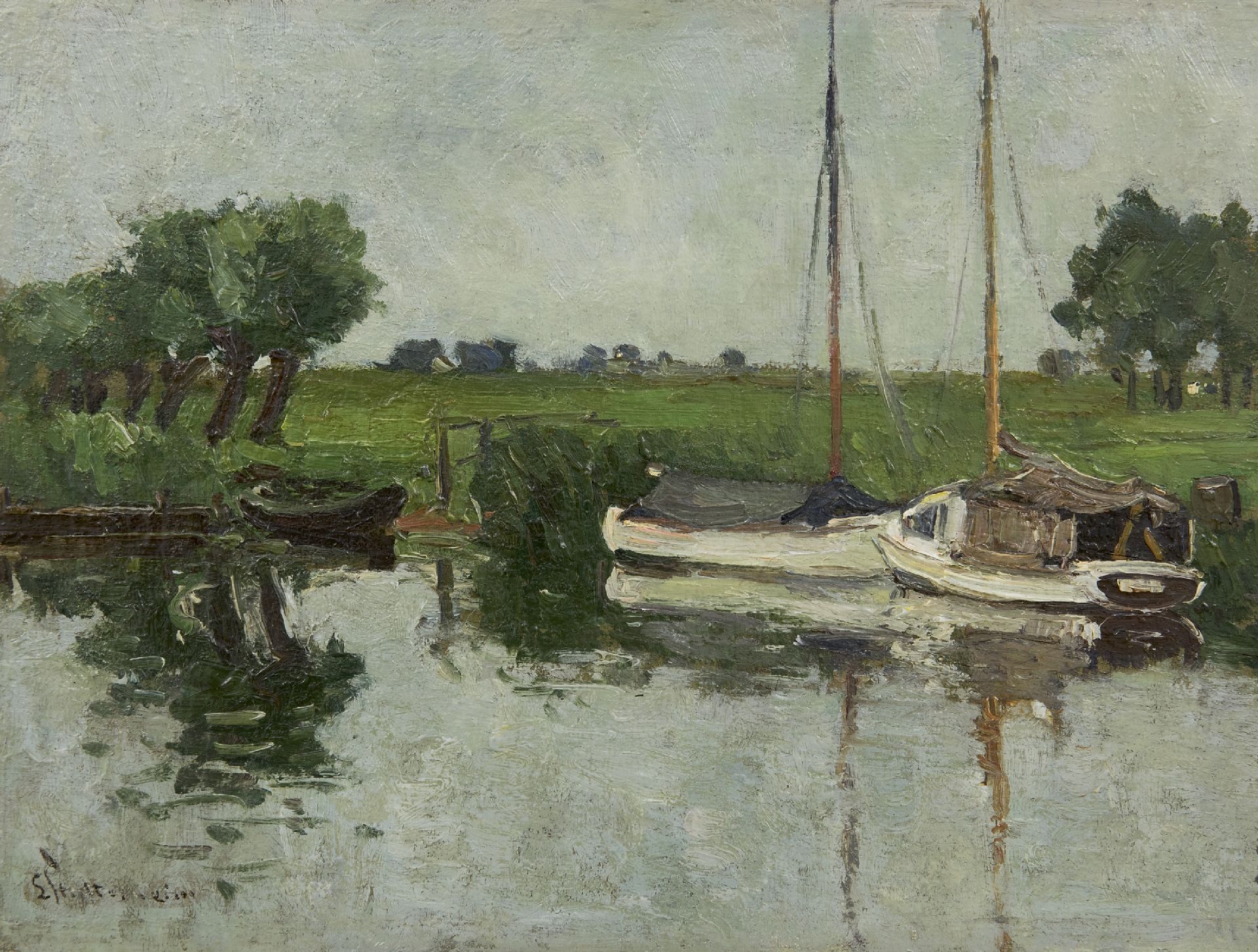 Louis Stutterheim Kunstwerk • Gemälde • zuvor zu verkaufen Angelegte Segelschiffe in der Eem bei Soest