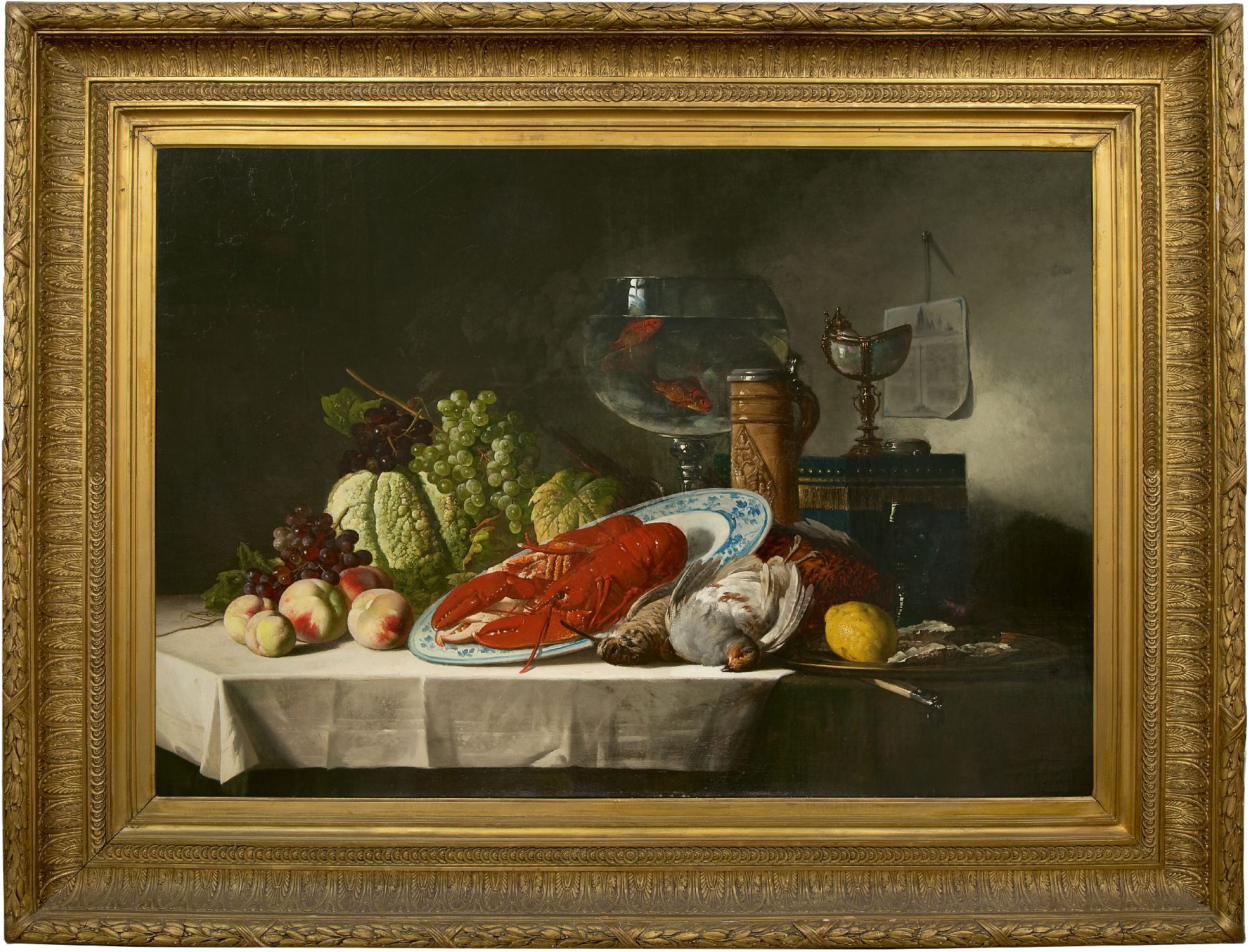 Luc Schaefels Kunstwerk • Gemälde • zuvor zu verkaufen Stilleben mit Hummer und Fischglas