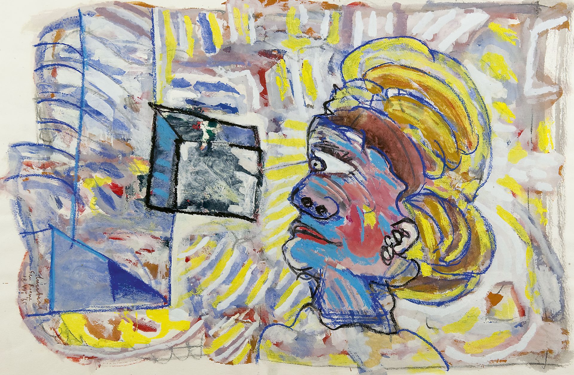 Kreide und Gouache auf Papier 52,0 x 77,5 cm, Unterzeichnet l.u. und datiert 'San Roque 18 VII '65'
