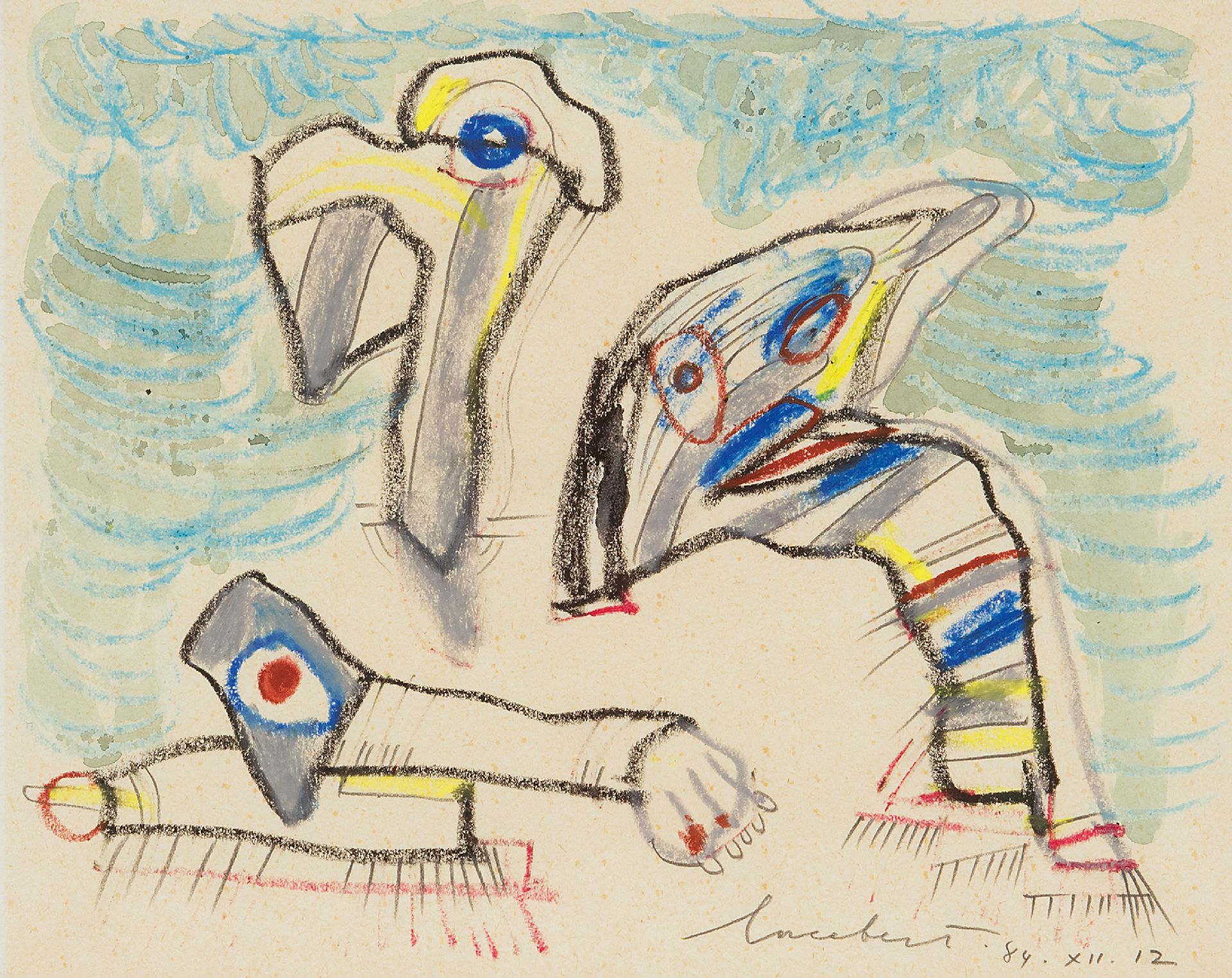 Lucebert Kunstwerk • Aquarell • Zeichnung • zu verkaufen Drei Wesen