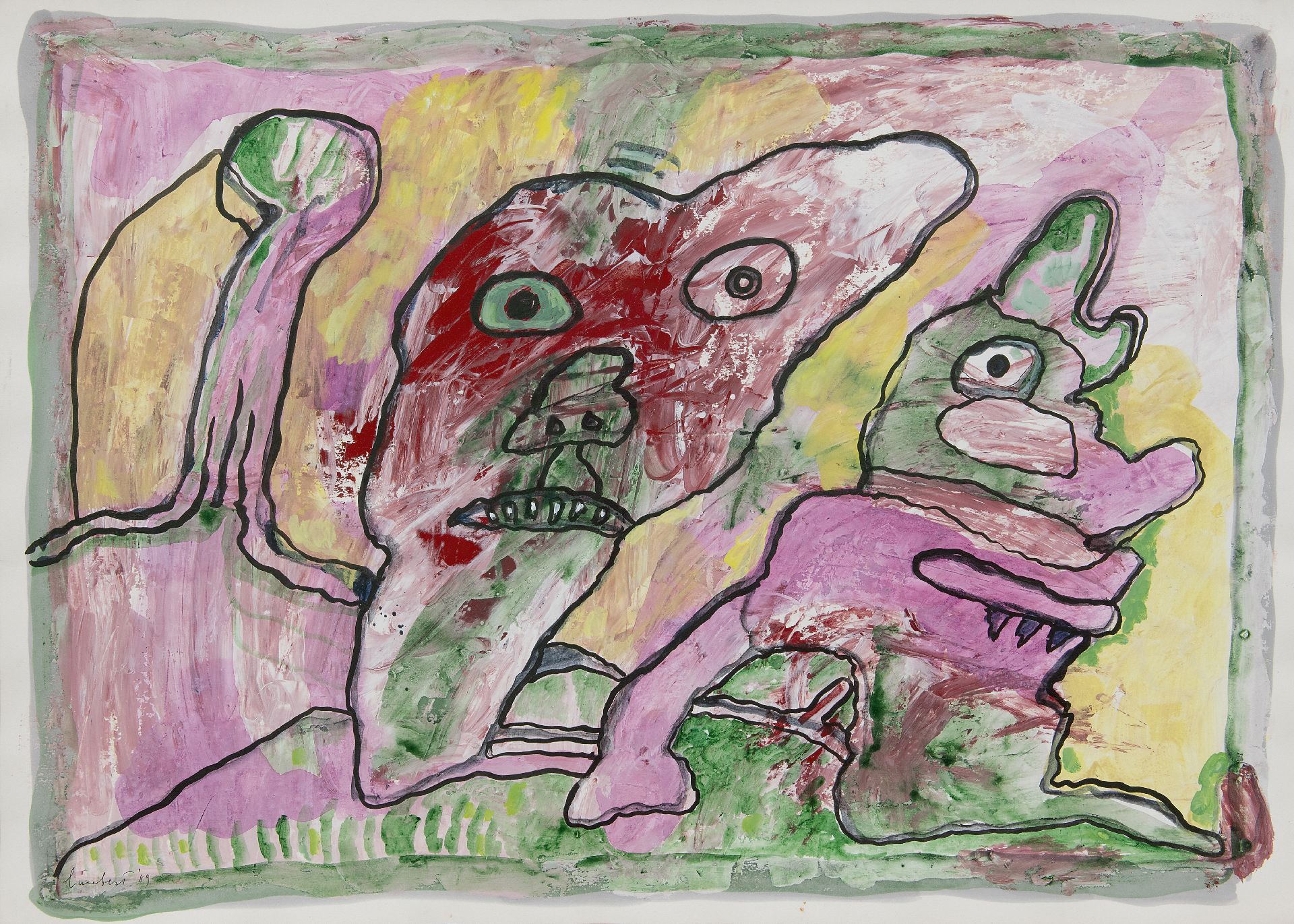 Lucebert Kunstwerk • Aquarell • Zeichnung • zu verkaufen Komposition mit grotesker Figur