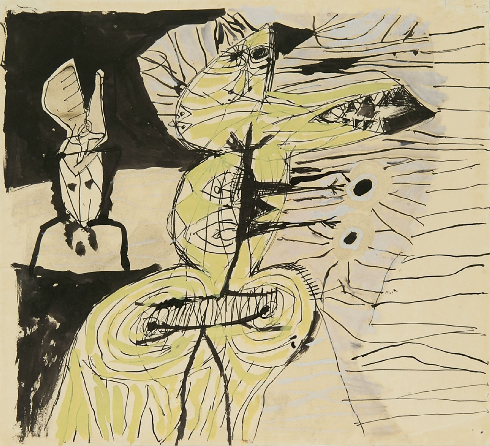 Lucebert war ein experimenteller Maler-Zeichner-Dichter und in dieser letzten Funktion eine der Hauptfiguren der CoBrA-Bewegung. Seine Arbeit zeichnet sich durch große Freiheit und Spontanität aus. Er malte, was zu ihm kam, ohne feste Motive einzuhalten. Ab den fünfziger Jahren baute er seine Zeichnungen und Gouachen aus Punkten, Linien und Kratzern auf, über die die bewusst unbequemen Körperformen von Menschen und Fantasiewesen gemalt wurden. Sein starker experimenteller Ansatz bedeutete, dass Lucebert auch in vielen anderen Bereichen tätig war: Er fotografierte, fertigte Keramik an, schrieb Dramatexte und machte monumentale Wandmalereien.