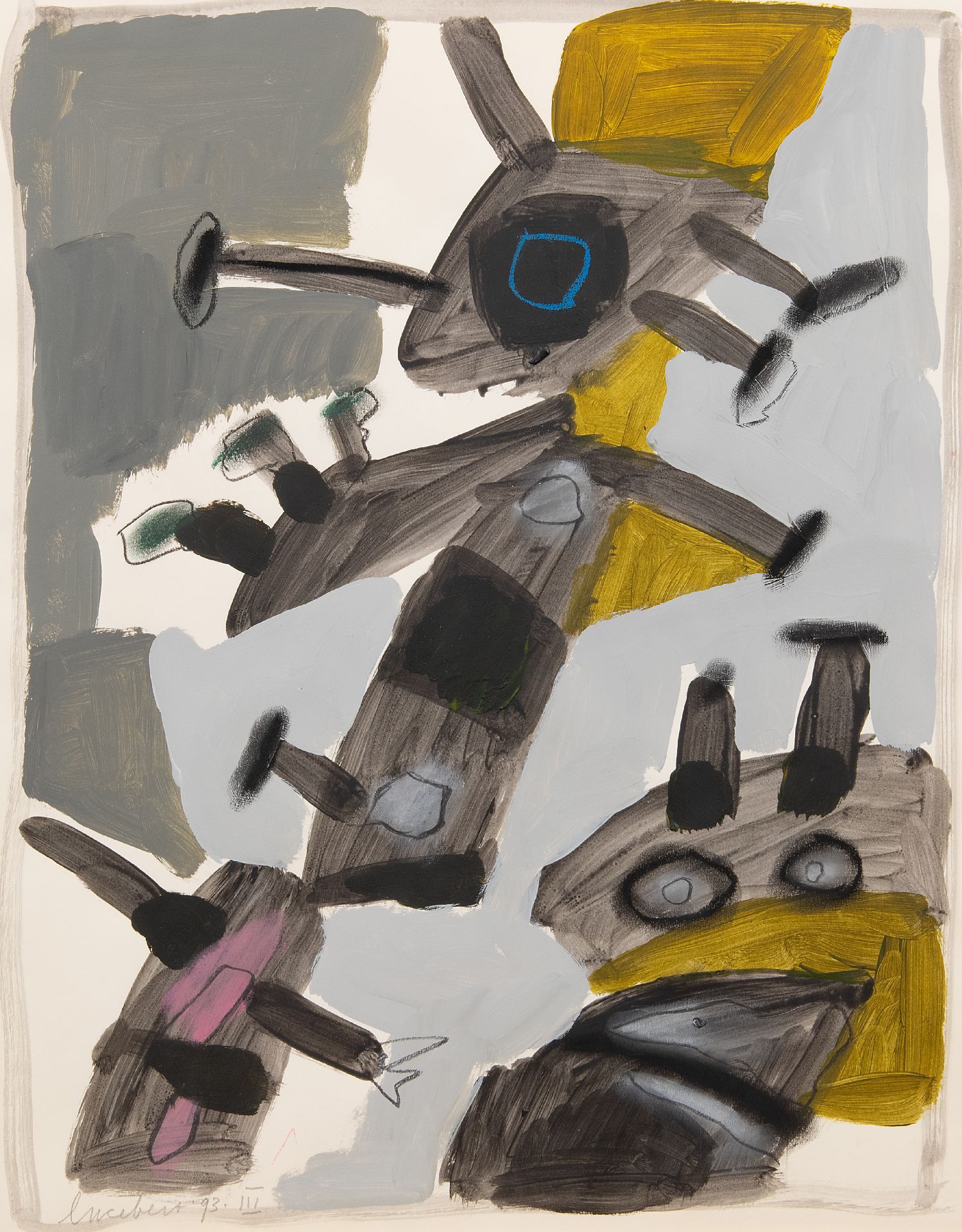 Lucebert (Lubertus Jacobus Swaanswijk)   | Lucebert (Lubertus Jacobus Swaanswijk) | Aquarelle und Zeichnungen zum Verkauf angeboten | Ohne Titel, Kreide und Gouache auf Papier 48,0 x 38,0 cm, Unterzeichnet u.l. und datiert 93.III