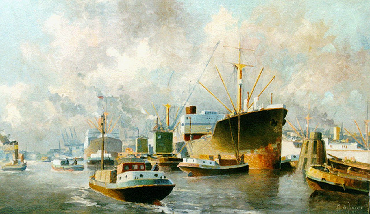 M.J. Drulman (M. de Jongere) Kunstwerk • Gemälde • zuvor zu verkaufen Shipping in the harbour of Rotterdam