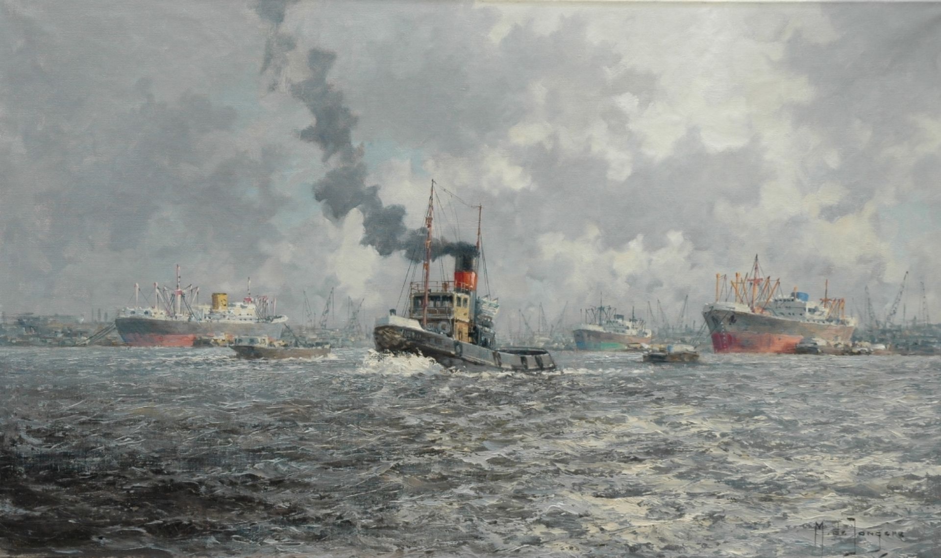 M.J. Drulman (M. de Jongere) Kunstwerk • Gemälde • zuvor zu verkaufen Tug fleet, The Waalhaven Rotterdam