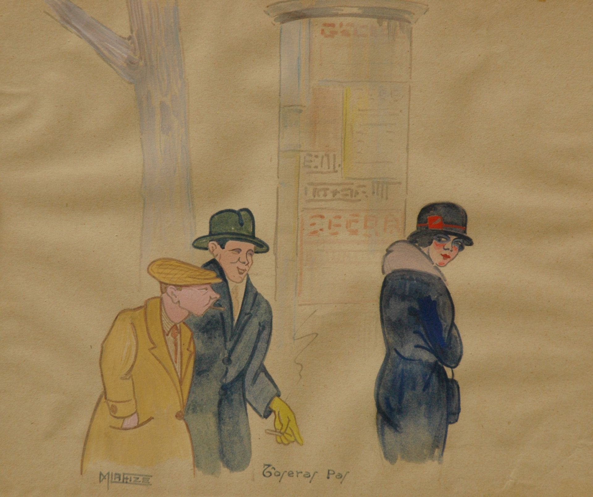 M. la Flize Kunstwerk • Aquarell • Zeichnung • zuvor zu verkaufen Flirtation
