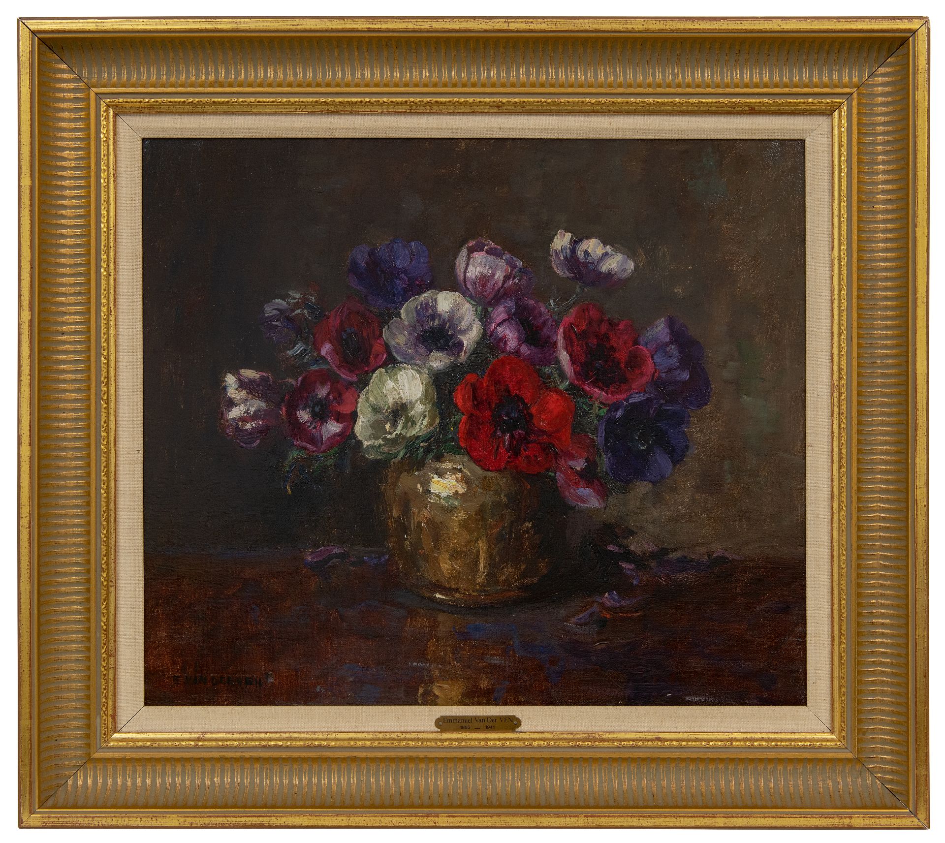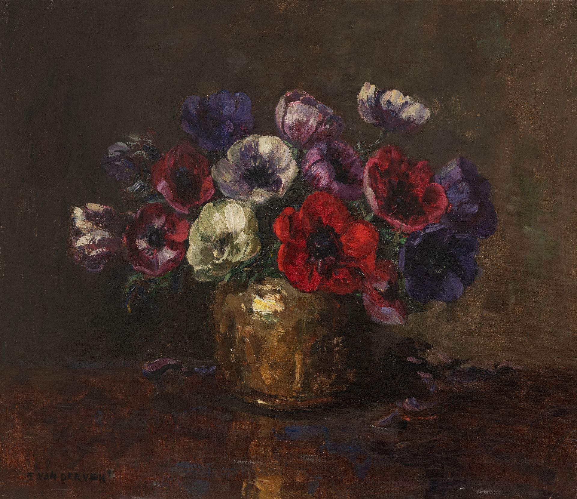 Manus van der Ven Kunstwerk • Gemälde • zu verkaufen Anemonen in einem Kupfertopf